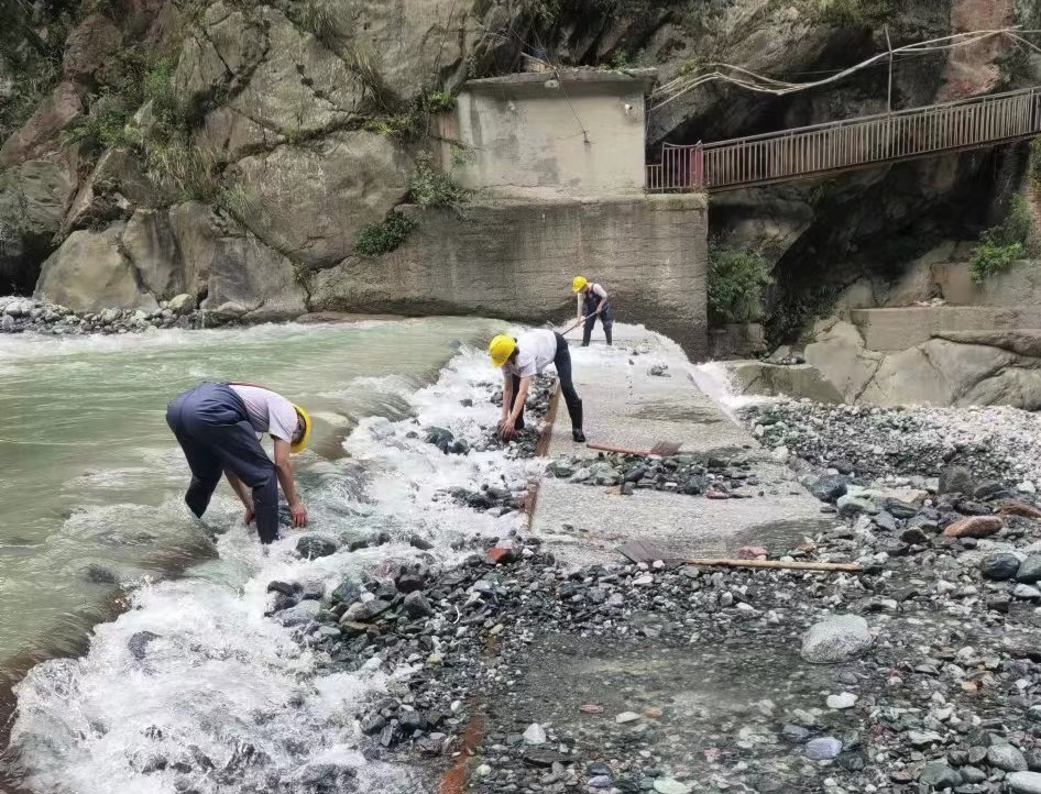 連日驟減的來水量迫使天彭電力鳳鳴湖水庫(kù)水位只能保持在低位運(yùn)行。此刻,對(duì)保供者來說,每一滴來水都彌足珍貴,而做好引水工作就成為了保障發(fā)電生產(chǎn)和城區(qū)供水的重中之重。天彭電力上下聯(lián)動(dòng),全員作戰(zhàn),沙金車間、鳳鳴橋車間一線堅(jiān)守責(zé)任到崗、迅速行動(dòng),頂著烈日清理底格欄柵壩壩面砂石、庫(kù)區(qū)進(jìn)水閘浮渣和前池淤積物,嚴(yán)格執(zhí)行“每日一小撈、三日一大撈、洪水天天撈”制度,做到多引水和保水源“兩手抓、兩手硬”,從源頭上守住保水保電的“生命線”。