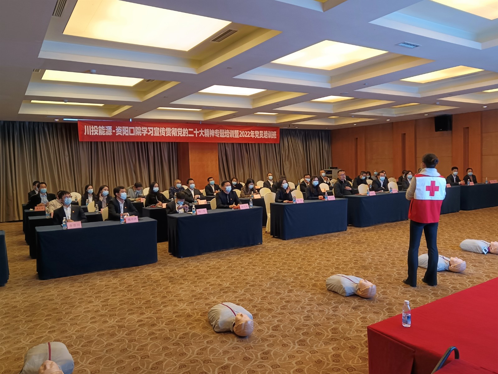 秋風(fēng)颯爽,丹桂飄香。2022年11月21日晚,為積極響應(yīng)黨的二十大提出的“做強(qiáng)做優(yōu)做大國有資本和國有企業(yè)”要求,構(gòu)建公司良好工作氛圍,宏揚(yáng)積極企業(yè)文化,融洽員工關(guān)系,同時(shí)豐富公司員工日常急救知識(shí)儲(chǔ)備、強(qiáng)化急救實(shí)操能力。公司人力資源部以黨員教育培訓(xùn)為契機(jī),委托成都市雙流區(qū)紅十字會(huì)在川投國際酒店一樓錦程廳開展應(yīng)急救護(hù)培訓(xùn)。