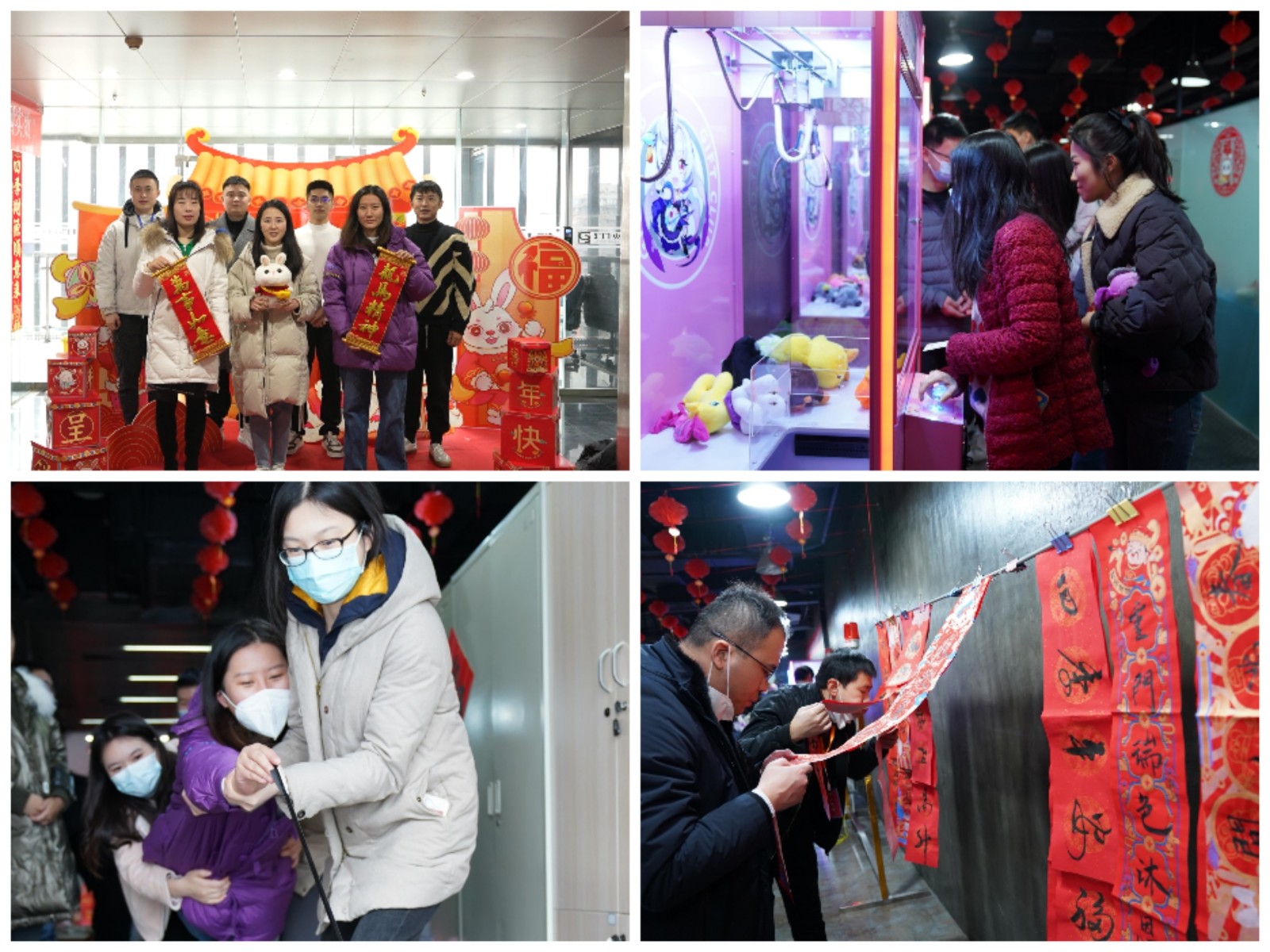 玉兔賀歲迎新年,生肖兔的形象自然成為新年中不可或缺的元素。在非遺體驗(yàn)區(qū)和新年祈福區(qū),傳統(tǒng)剪紙、春聯(lián)、燈籠技藝與生肖兔的結(jié)合,更是把中華傳統(tǒng)文化體現(xiàn)得淋漓盡致。精美剪紙活靈活現(xiàn)、揮毫潑墨筆走龍蛇,大家紛紛展示自己“得意之作”,表達(dá)辭舊迎新、接祥納福的美好祝愿。而游戲互動(dòng)區(qū)的“萌力十足娃娃機(jī)”“穿越火線(xiàn)”“戰(zhàn)弓烈焰” 等趣味游戲,不僅讓大家得到了身心放松、精神愉悅,也展現(xiàn)著川投能源人的團(tuán)結(jié)協(xié)作和良好風(fēng)貌。