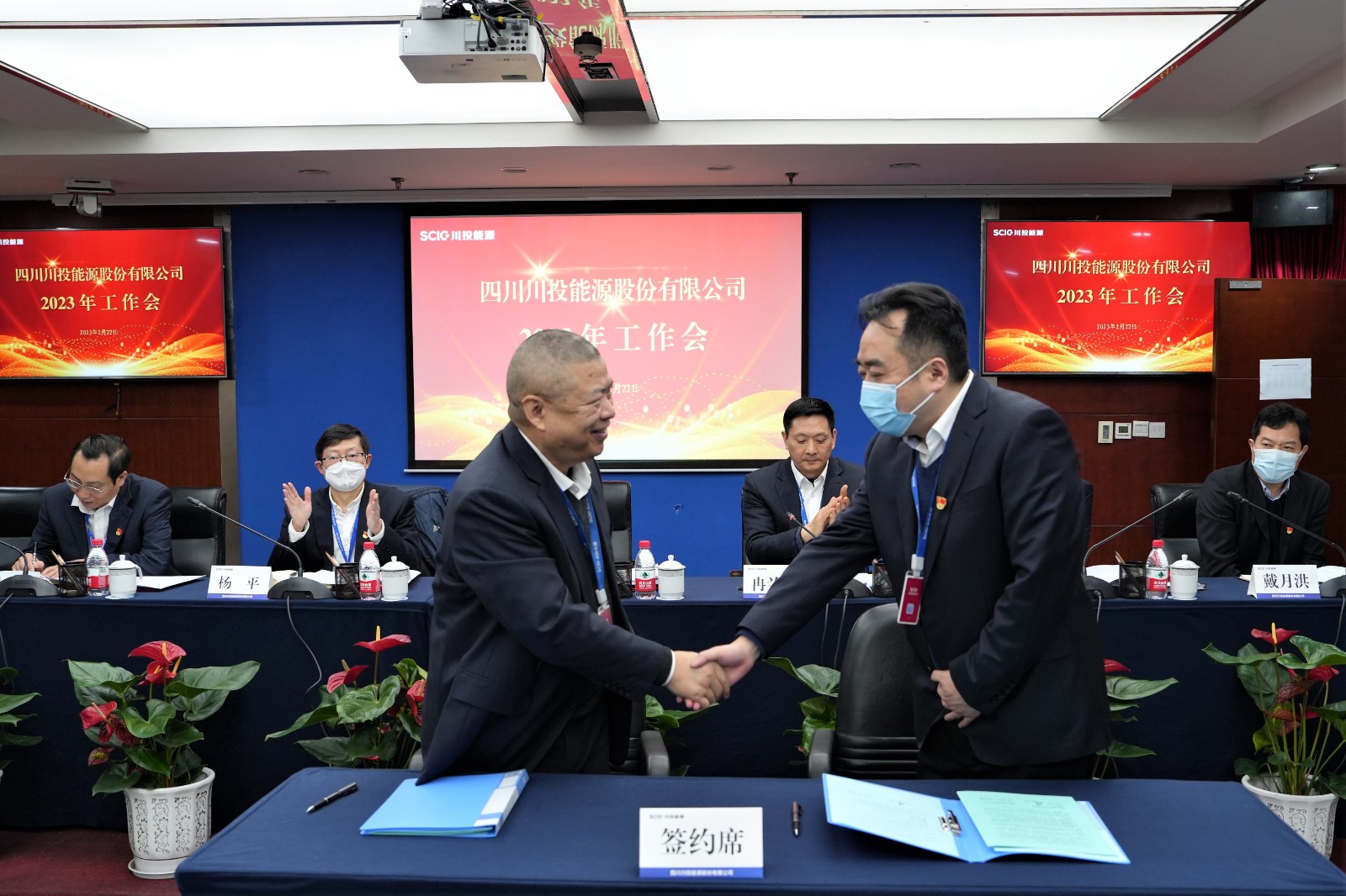 會上,楊洪與所屬企業(yè)負責人代表簽署了《經(jīng)營業(yè)績責任書》《安全生產(chǎn)、環(huán)境保護工作目標責任書》;冉蘭平宣讀2022年度優(yōu)秀員工表彰通報;黨委委員、副總經(jīng)理、總法律顧問楊平作2022年安全環(huán)保工作總結及2023年重點工作安排;黨委委員、財務總監(jiān)劉好傳達川投集團2023年工作會精神。