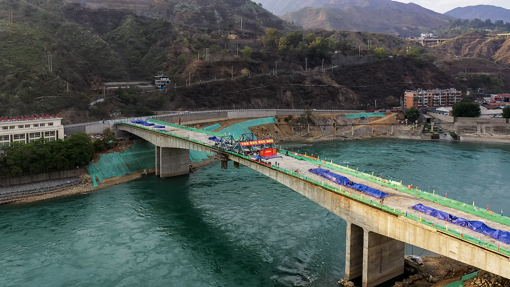 銀江大橋?qū)儆阢y江水電站配套建設(shè)項目,位于水電站大壩下游1.06公里處,由攀枝花市政府與川投能源攀水電公司共同投資建設(shè),項目預(yù)計總投資2.69億元,大橋左岸連接G353國道,右岸連接G227國道,可謂“一橋飛架南北,牽手兩條國道,連通共同富?!保桥手ㄈ嗣衿谂我丫玫摹懊裆鷺?、幸福橋、富裕橋”,大橋建成后,將作為攀枝花城市主要交通路網(wǎng)之一,有利于減輕金沙江兩岸過江交通壓力,縮短兩岸居民跨江距離,有效推動攀枝花城市擴(kuò)容提質(zhì),助力當(dāng)?shù)亟?jīng)濟(jì)發(fā)展。