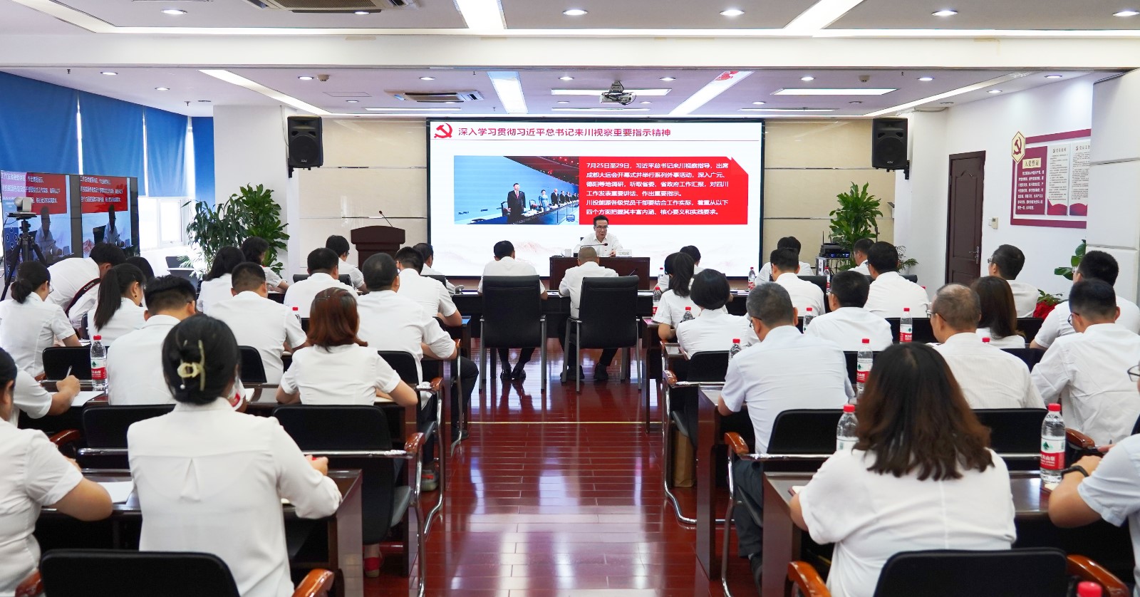 宣講報告會以“現(xiàn)場+視頻”形式召開,川投能源及所屬企業(yè)領(lǐng)導(dǎo)班子成員、中層以上管理人員、黨員代表共計170余人參會。