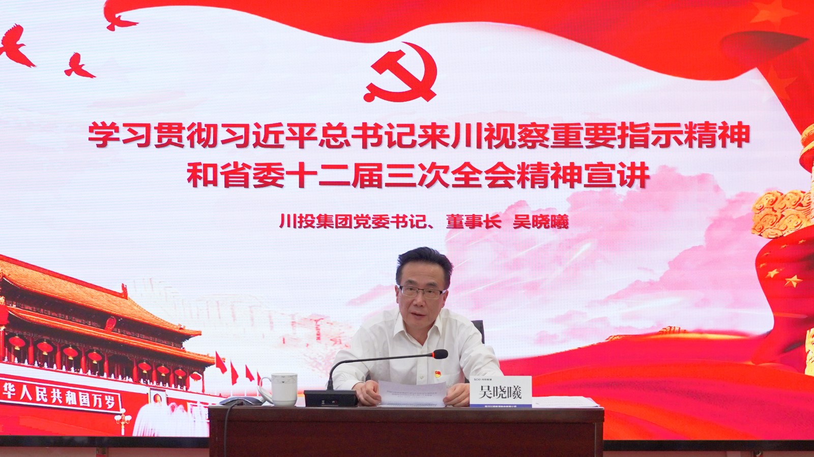吳曉曦立足當(dāng)前國情省情,結(jié)合川投能源改革發(fā)展現(xiàn)狀,圍繞習(xí)近平總書記來川視察重要指示精神和省委十二屆三次全會精神進(jìn)行了深入闡釋和系統(tǒng)解讀。他指出,習(xí)近平總書記來川視察重要指示精神是對四川工作最權(quán)威、最深刻、最有力的科學(xué)指導(dǎo)。要深刻領(lǐng)會習(xí)近平總書記對四川的深切關(guān)懷,凝心鑄魂強(qiáng)化忠誠;要自覺擔(dān)當(dāng)習(xí)近平總書記賦予的戰(zhàn)略使命,增強(qiáng)機(jī)遇意識和進(jìn)取精神;要全面落實(shí)習(xí)近平總書記部署的重點(diǎn)任務(wù),全力以赴拼經(jīng)濟(jì)、搞建設(shè)、抓發(fā)展;要認(rèn)真落實(shí)習(xí)近平總書記對主題教育的最新部署,以主題教育為牽引全面加強(qiáng)黨的建設(shè)。