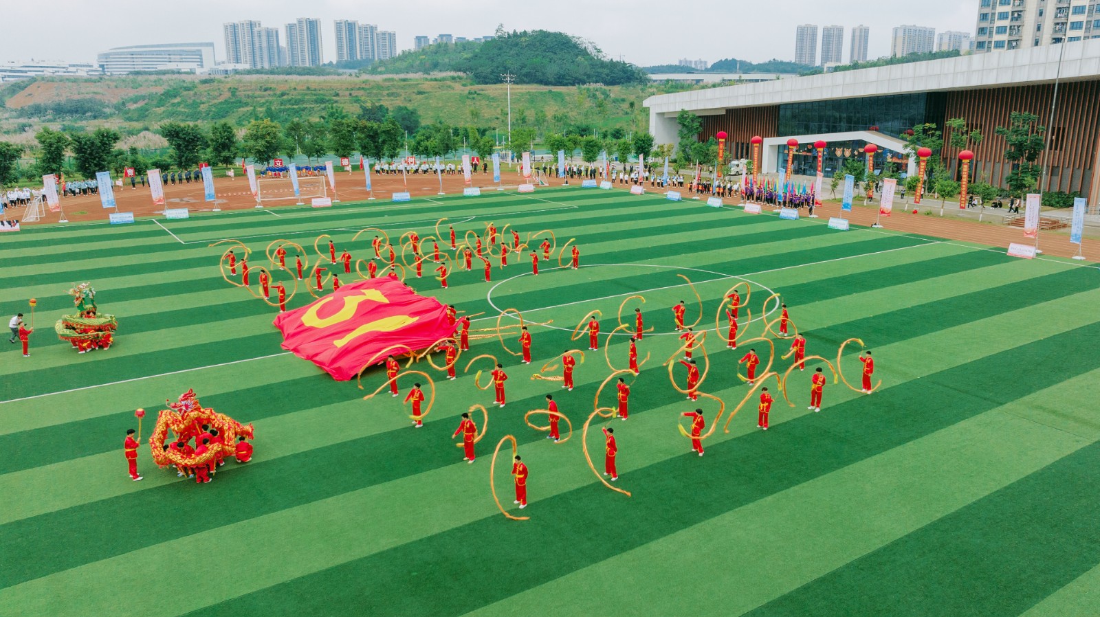 開幕式現場,彩旗招展,氣氛熱烈。15時整,在氣勢恢宏的舞龍表演后,運動會開幕式正式開始。伴隨著激昂的旋律,儀仗隊員護擁著鮮艷的五星紅旗健步入場。隨后,各參賽代表團依次入場并進行風采展示,精心準備的舞蹈、歌曲等文藝節(jié)目,引燃全場氣氛。入場式后,全場起立,高唱中華人民共和國國歌。在雄壯的國歌聲中,鮮艷的五星紅旗冉冉升起,迎風飄揚。