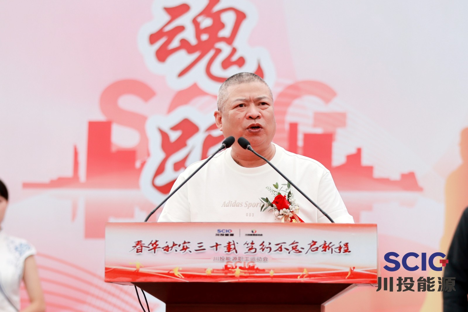 楊洪在致辭中代表川投能源全體職工,向出席開幕式的各位領導、來賓表示誠摯歡迎,向全體運動員、裁判員和工作人員致以親切問候,向資陽口院全體師生表示衷心感謝。他說,本次職工運動會是川投能源深入貫徹落實習近平總書記關于加快建設體育強國重要指示和黨的二十大精神,豐富職工精神文化生活,促進職工全面發(fā)展的重要舉措。回首上市三十年,川投能源人始終堅定聽黨話、感黨恩、跟黨走,全力以赴拼經濟、搞建設、謀發(fā)展,華麗蝶變成為四川省參控股裝機規(guī)模最大的能源上市公司。希望全體運動健兒弘揚中華體育精神和體育道德風尚,賽出風格、賽出水平、賽出成績。希望川投能源全體職工和參賽人員以本次運動會為契機,進一步激發(fā)團結奮斗、銳意進取、爭創(chuàng)一流的工作精神,并將之轉化為干事創(chuàng)業(yè)、奮勇爭先的強大動力,認真工作、勤勉履職、健康生活,牢記領袖殷殷囑托,奮進新征程建功新時代。