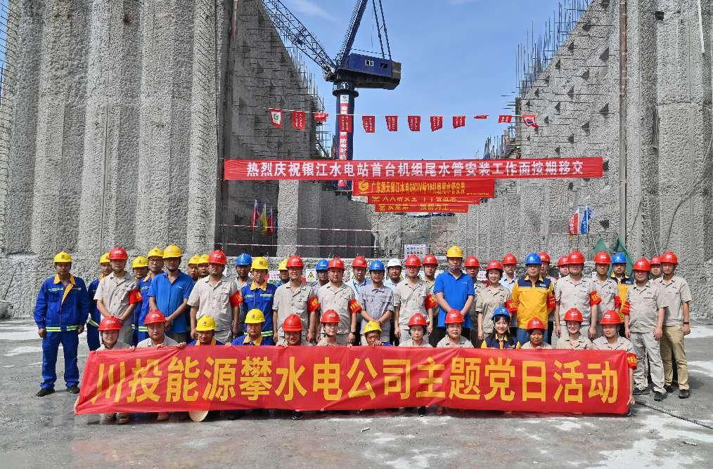 如同故宮有排水神獸螭首,銀江也有獨(dú)特的排水神器——尾水管。銀江水電站尾水管出口直徑12.05米,尾水管分3節(jié),每節(jié)分4瓣,總重92.726噸,發(fā)電后每臺(tái)尾水管排水流量可達(dá)577立方米每秒。尾水管安裝是燈泡貫流式機(jī)組由土建施工向機(jī)電安裝轉(zhuǎn)序的標(biāo)志,為加快工程推進(jìn),攀水電公司組織開展領(lǐng)導(dǎo)“分片包干”掛牌督導(dǎo)專項(xiàng)行動(dòng),開啟“責(zé)任田”模式,自5月25日銀江水電站首臺(tái)機(jī)組尾水管安裝按期交面開始,其余5臺(tái)機(jī)組尾水管相繼交面并安裝完成,整體工期較原計(jì)劃提前20天。