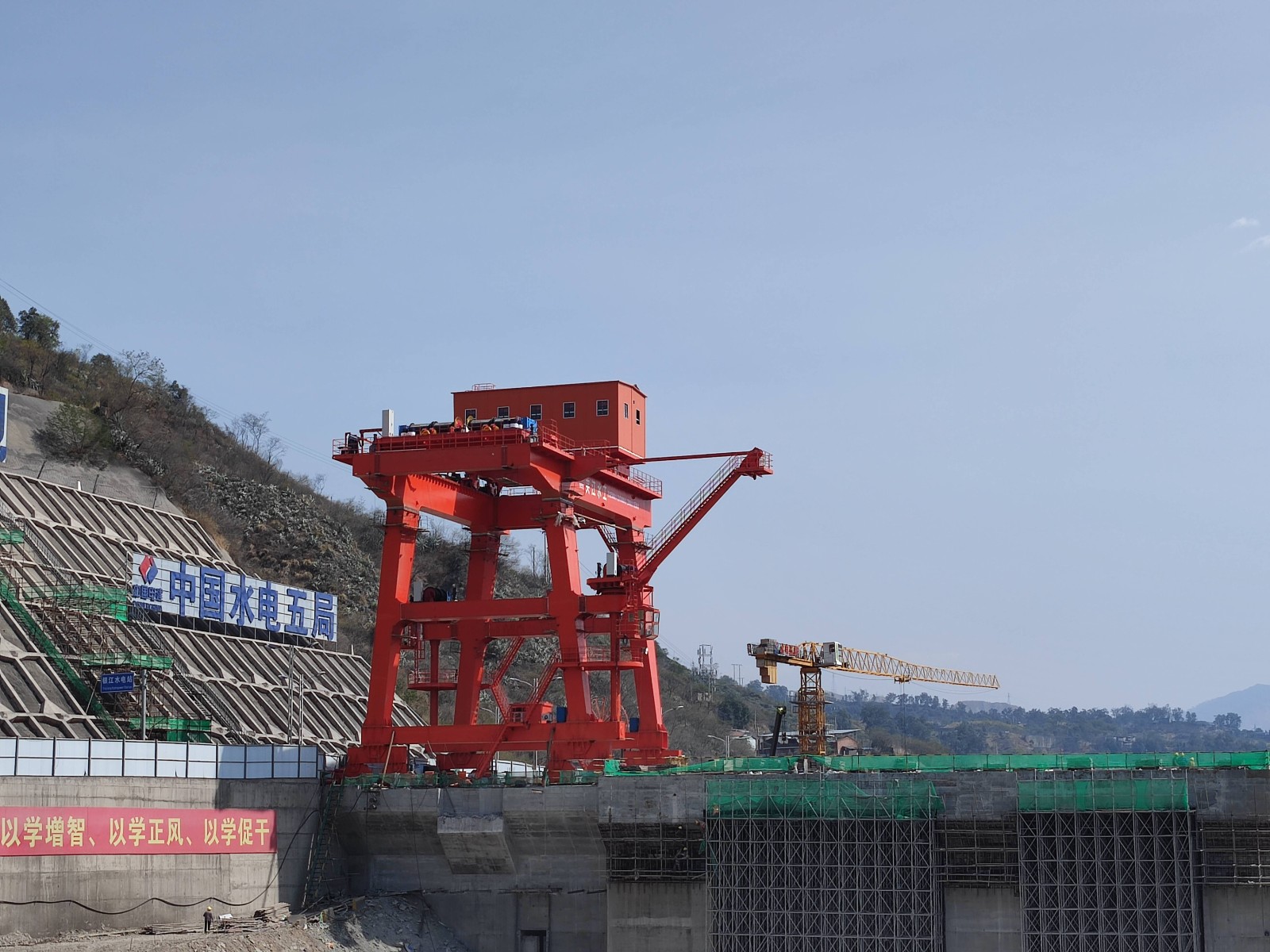 紅色門機迎江矗立?!按蟮踯囌鎱柡?,百噸設(shè)備輕而易舉提抓起來!”今年以來,攀枝花廣大市民陡然發(fā)現(xiàn)銀江水電站大壩上架起了一個紅色的大型設(shè)備,從幾公里外的市區(qū)一眼望去就能映入眼簾,成為銀江水電站的新標(biāo)志。這個紅色巨物就是壩頂門機,高25米,寬16米,最大起吊能力達到500噸,起升高度達75米。是水電站建設(shè)期金屬結(jié)構(gòu)安裝及后期電站運行最重要的設(shè)備之一,2024年將肩負(fù)起包括36扇閘門在內(nèi)共計超萬噸的設(shè)備起吊任務(wù)。為順利推進施工,開年以來,川投能源攀水電公司通過增加臨時軌道提前籌備、堅持春節(jié)不停工等措施,加快實施壩頂門機供貨安裝,計劃4月中旬投入使用。