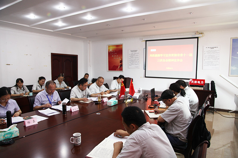 為推動省委十一屆三次全會精神宣貫活動深入開展,確保省委決策部署不折不扣落到實處, 8月8日,按照川投能源黨委的統(tǒng)一部署,黨委副書記、工會主席陳長江率黨群部副主任楊鑫一行赴天彭電力宣講省委十一屆三次全會精神,為天彭電力黨員干部和員工上了一堂生動的黨課。會議由天彭電力黨總支書記、總經理楊濤主持,天彭電力全體干部、黨員和員工代表共計28人參加了宣講會。