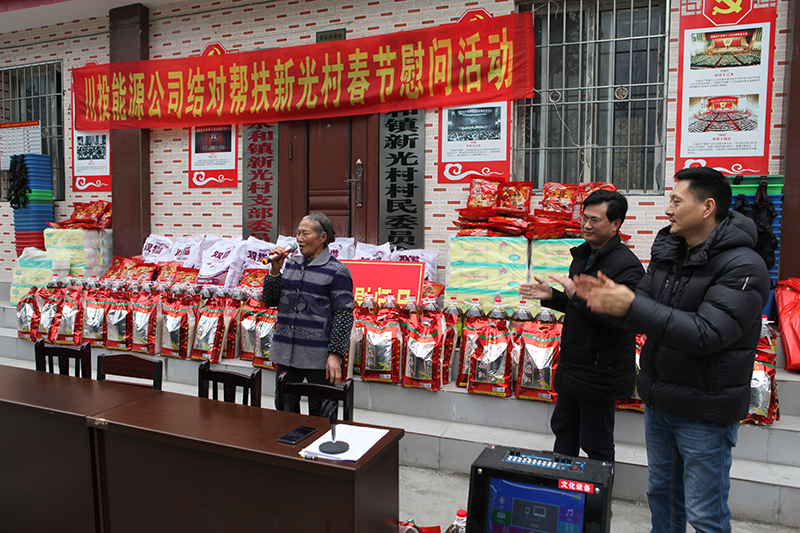 慰問現(xiàn)場(chǎng),冉書記代表公司黨委和全體員工,對(duì)新光村父老鄉(xiāng)親表示誠(chéng)摯的新春祝福和問候。冉書記指出,黨的十九大吹響了全面消滅貧困、實(shí)現(xiàn)小康號(hào)角,經(jīng)過(guò)幾年的努力,川投能源對(duì)口幫扶村面貌煥然一新,這得益于黨和國(guó)家的好政策,得益于扶貧干部和當(dāng)?shù)卮甯刹康墓餐?,得益于廣大鄉(xiāng)親父老的勤勞、智慧和汗水。接下來(lái),川投能源將繼續(xù)深入貫徹中央、省委及集團(tuán)公司精準(zhǔn)脫貧精神,創(chuàng)新扶貧工作思路,提高幫扶工作標(biāo)準(zhǔn),立足實(shí)際,努力為幫扶村群眾辦更多的實(shí)事、好事,以優(yōu)異的工作業(yè)績(jī)喜迎新中國(guó)成立70周年。