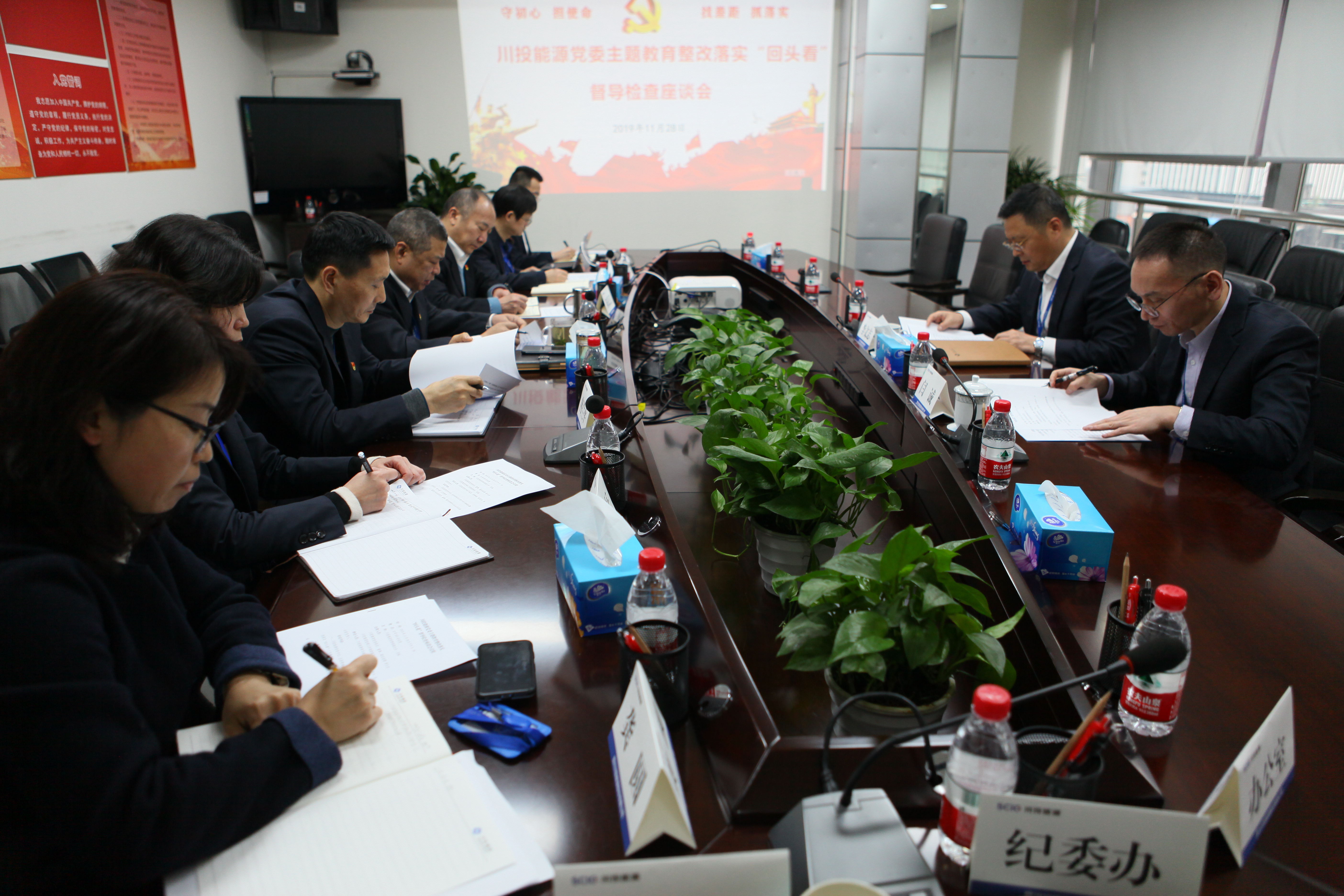 按照川投集團黨委關于開展整改落實“回頭看”工作的部署要求,11月28日,川投集團黨委委員、董事、副總經理李文志到川投能源督導檢查“不忘初心、牢記使命”主題教育“回頭看”工作。集團公司黨群工作部副部長閆誠陪同督導,川投能源領導班子成員、相關部門負責人參加會議。