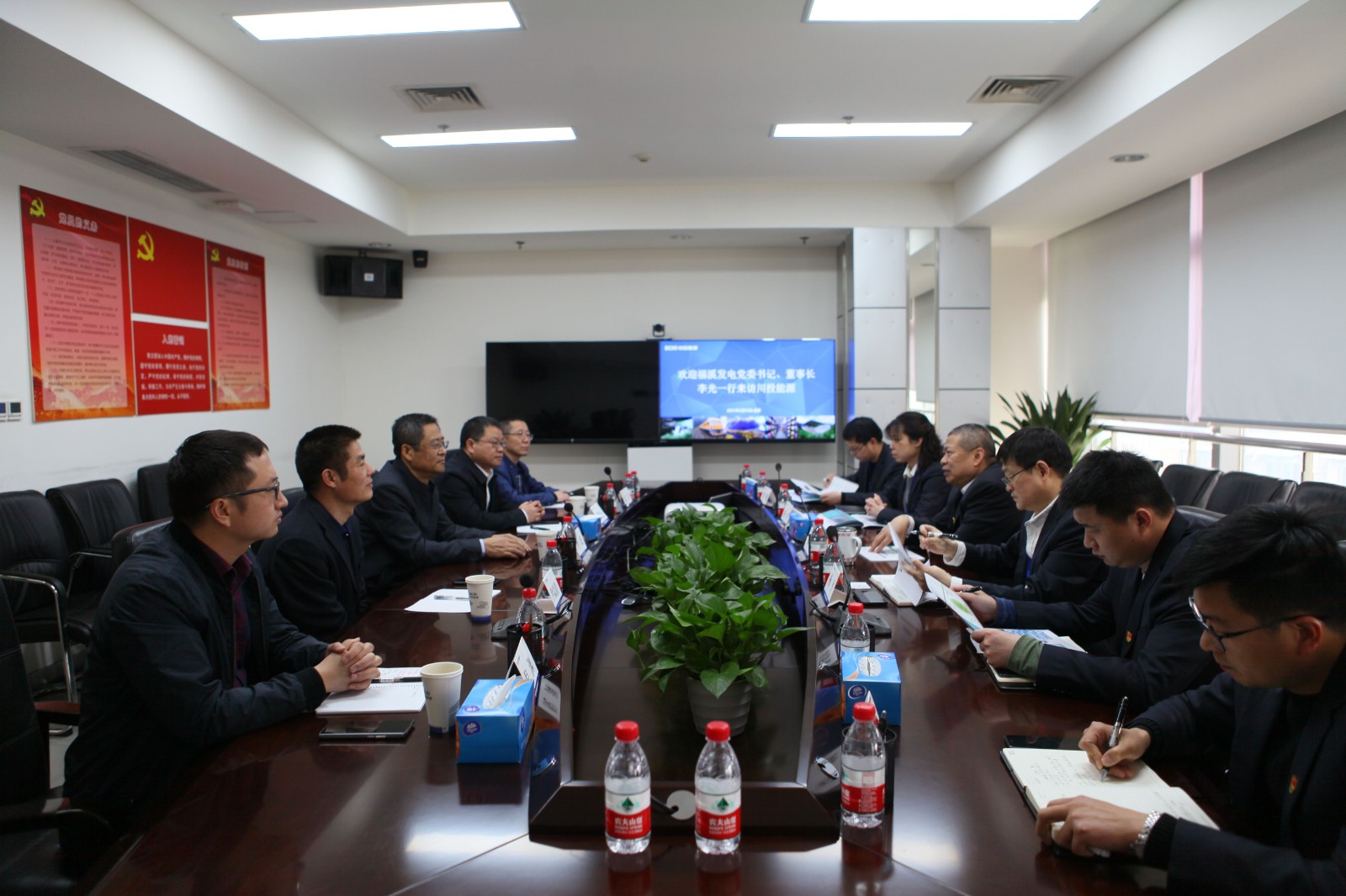 楊洪對李光一行表示熱烈歡迎,并介紹了川投能源基本情況、“一主兩輔”產業(yè)布局、新能源發(fā)展現(xiàn)狀和未來發(fā)展思路等。他指出,川投能源作為以清潔能源為主業(yè)的上市公司,新能源板塊目前尚未取得重大突破,今年公司將加大項目拓展力度,加強與央企的合作,重點布局、多點發(fā)力,力爭實現(xiàn)光伏項目突破。他希望與中電福溪建立合作機制,加強優(yōu)勢互補,在光電、風電及水風光互補一體化建設等新能源領域加強信息溝通,開展全方位、多層次、寬領域的業(yè)務合作,共同實現(xiàn)高質量發(fā)展。