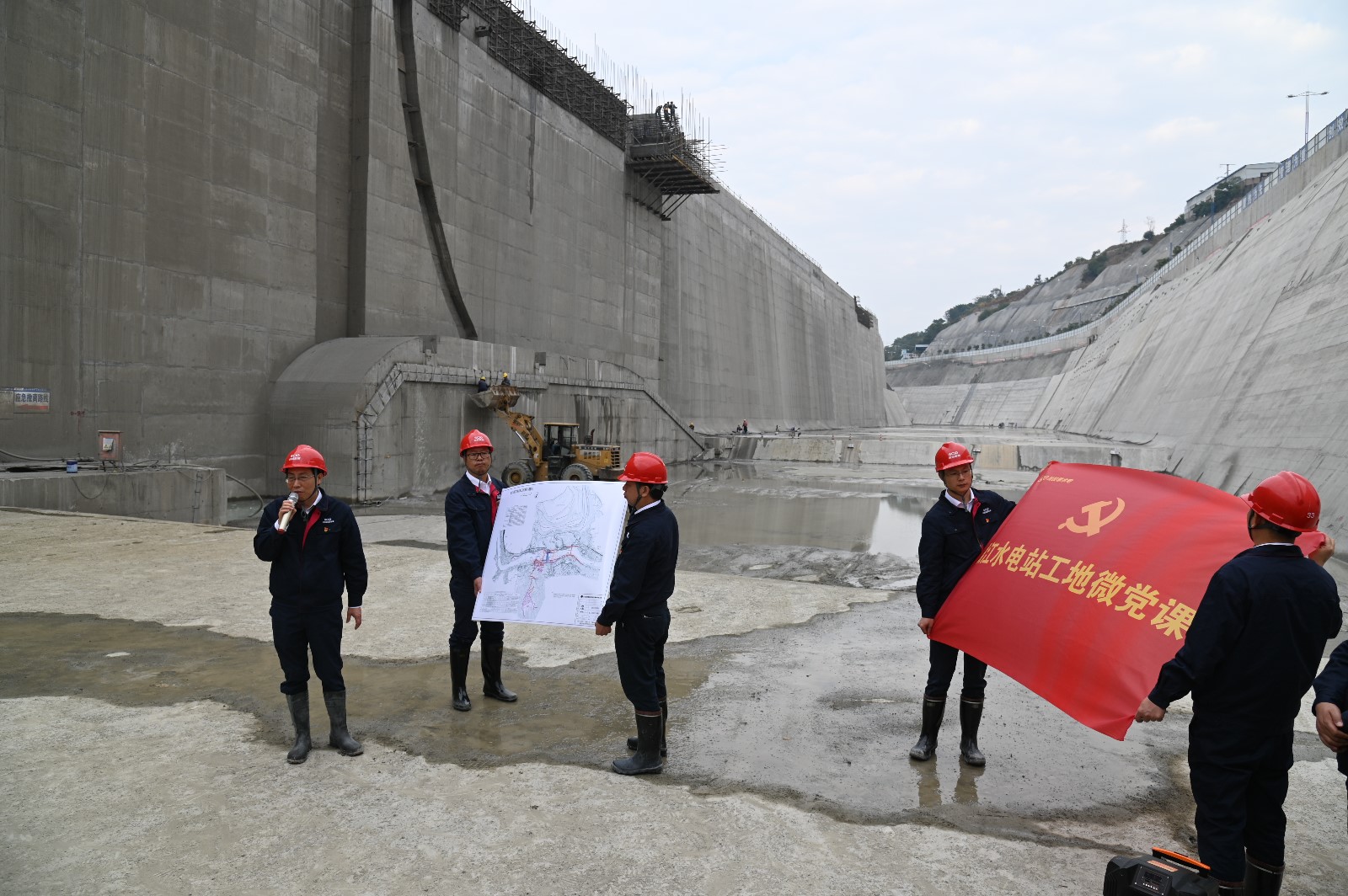 在銀江水電站導(dǎo)流明渠過(guò)流和大江截流來(lái)臨之際,為持續(xù)推進(jìn)“我為群眾辦實(shí)事”活動(dòng)走深走實(shí),不斷激勵(lì)黨員同志不忘初心、奮勇前進(jìn),12月2日,攀水電公司黨總支組織開展了“我為銀江辦實(shí)事”主題黨日活動(dòng)。川投能源副總經(jīng)理、攀水電公司黨總支書記、董事長(zhǎng)徐孝剛在導(dǎo)流明渠基坑講授微黨課,并帶領(lǐng)大家開展工地大掃除,公司全體黨員、職工及各參建單位聯(lián)建支部黨員共100余人參加本次活動(dòng)。