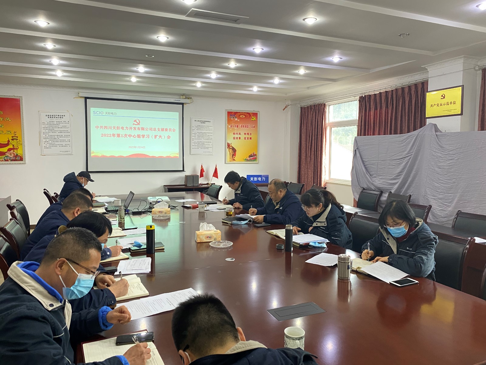 1月24日上午,天彭電力黨總支在公司二樓會(huì)議室召開2022年第1次中心組學(xué)習(xí)(擴(kuò)大)會(huì),公司領(lǐng)導(dǎo)、黨員干部、關(guān)鍵崗位人員參加會(huì)議,會(huì)議由公司黨總支書記、董事長(zhǎng)、總經(jīng)理陳忠主持。