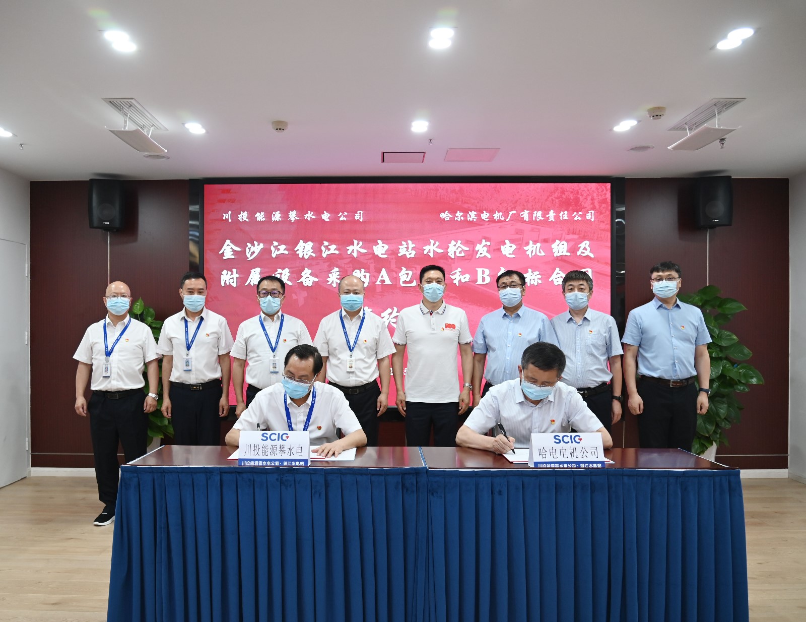 5月13日上午,攀水電公司在公司2620會議室舉行了金沙江銀江水電站水輪發(fā)電機組及附屬設(shè)備采購A包標和B包標合同簽約儀式。川投能源黨委副書記、工會主席冉蘭平出席儀式并見證簽約,川投能源副總經(jīng)理、攀水電公司黨總支書記、董事長、攀新能源公司董事長徐孝剛與哈爾濱電氣股份有限公司副總裁、哈爾濱電機廠有限責任公司董事長、黨委書記王貴代表雙方簽約,儀式由攀水電公司黨總支委員、總經(jīng)理吳巍嶼主持,哈爾濱電機廠有限責任公司相關(guān)部門人員、攀水電公司與攀新能源公司領(lǐng)導及相關(guān)人員共23人出席儀式。