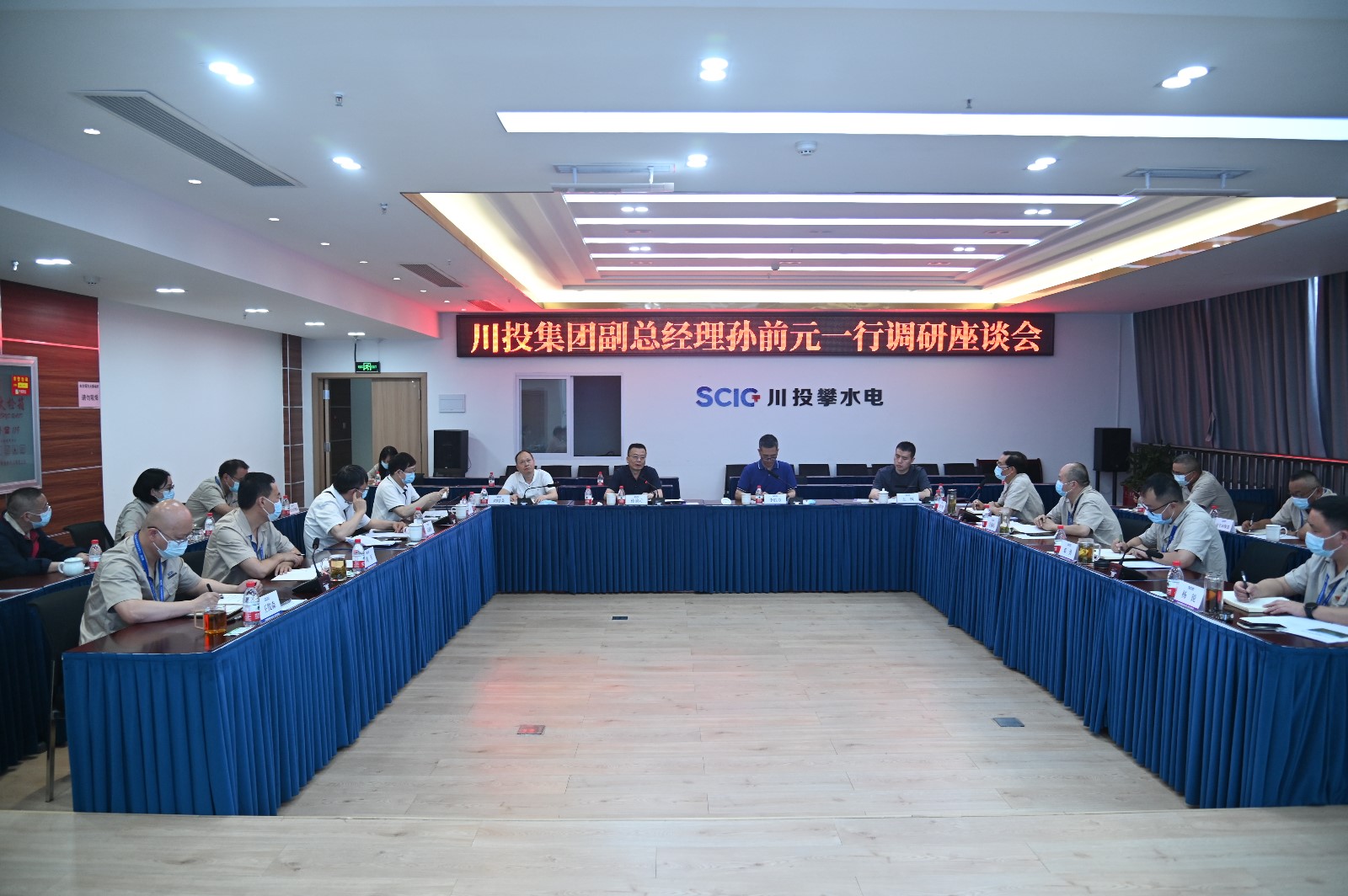 當天下午,孫前元一行在攀水電公司2620會議室召開了座談會,會議由李勝章主持,楊平、袁成明以及攀水電公司領導班子、各部門負責人參加會議。徐孝剛詳細匯報了銀江水電站項目工程建設、攀新能源公司工作進展情況,以及下一步工作打算。