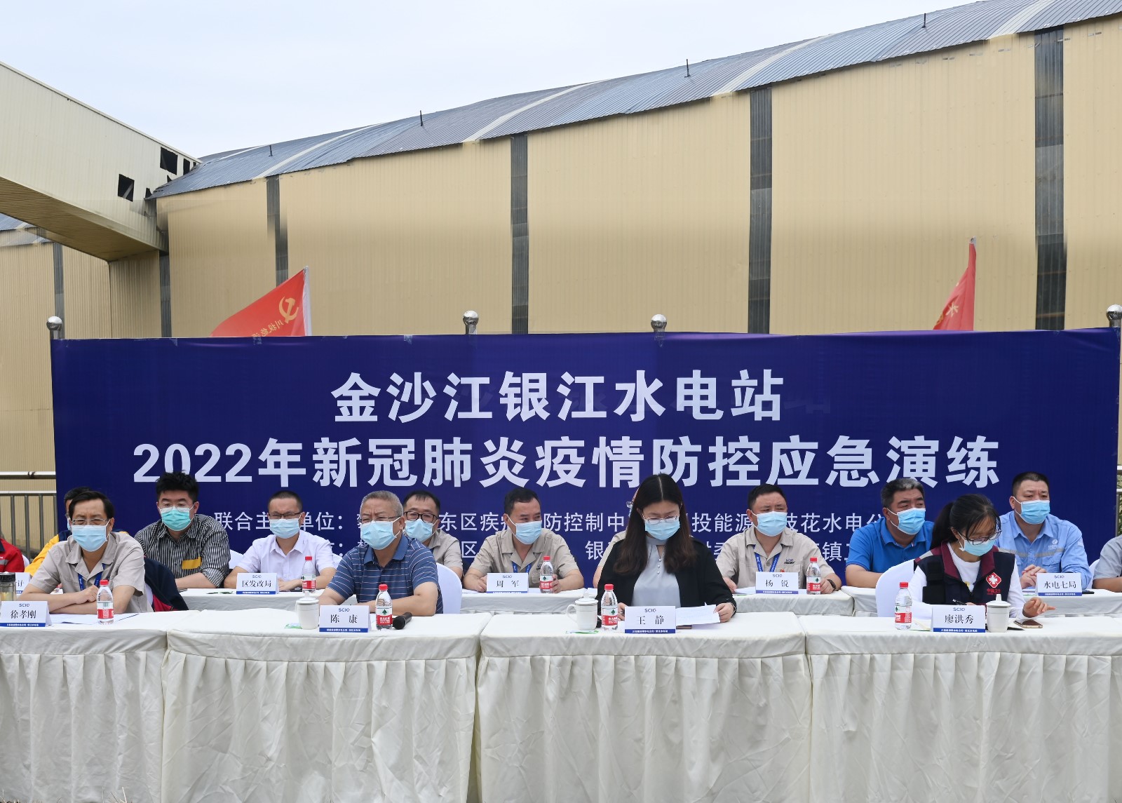 為進一步做好公司新冠疫情防控工作,強化和提高公司與各參建單位的應(yīng)急處置意識和能力,5月21日上午,攀水電公司與東區(qū)疾控中心在銀江水電站35kV施工變電站聯(lián)合組織開展新冠疫情防控應(yīng)急演練。演練由攀水電公司黨總支委員、總經(jīng)理、疫情防控領(lǐng)導(dǎo)小組副組長吳巍嶼主持,川投能源副總經(jīng)理、攀水電公司黨總支書記、董事長、疫情防控領(lǐng)導(dǎo)小組組長徐孝剛擔任演練總指揮,攀枝花市東區(qū)政府副區(qū)長王靜,東區(qū)人大黨組副書記、副主任陳康,東區(qū)有關(guān)部門負責人和公司疫情防控領(lǐng)導(dǎo)小組主要成員及各參建單位負責人到現(xiàn)場觀摩演練。