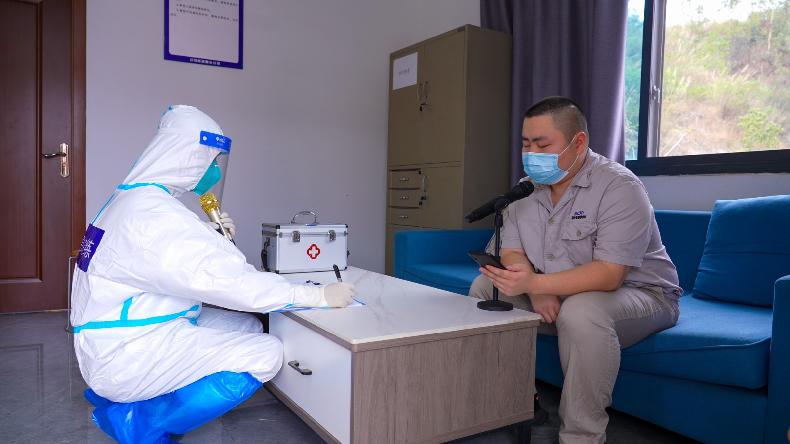 本次演練模擬情景為某日銀江水電站35kV施工變電站員工探親返回攀枝花,在單位內(nèi)接到東區(qū)疾控中心電話通知其在返攀動車上與某確診病例同車廂,被四川省疾控應(yīng)急調(diào)度管理平臺推送為新冠疫情密切接觸者,且有多名同事與其在工作中有近距離接觸。按照公司新冠應(yīng)急預(yù)案對應(yīng)等級規(guī)定,經(jīng)公司疫防辦請示疫防領(lǐng)導(dǎo)小組批準,立即啟動疫情防控重大(II級)響應(yīng)。