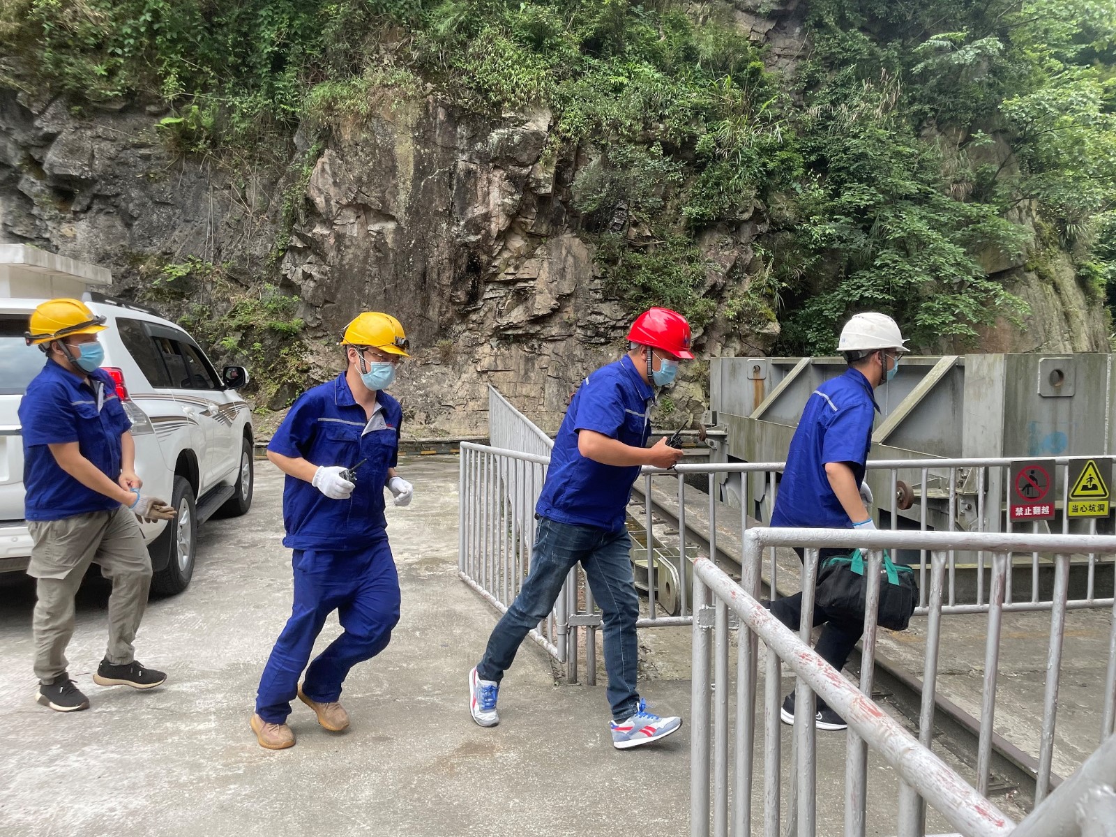 隨著演練總指揮喇叭河鎮(zhèn)副鎮(zhèn)長徐志鵬一聲令下,演練正式開始。地震警示鈴聲響起,大壩值班員迅速撤離到避險區(qū)域,待主震過后,立即開展設備設施巡視檢查,并同步開展信息上報、水庫水位控制一系列工作。演練以模擬電廠“300kW柴油發(fā)電機不能啟動”為背景,大壩參演人員匯報中控室,隨后應急搶修組立即趕赴現(xiàn)場,對出現(xiàn)的故障進行逐一排查和縝密分析,在規(guī)定的時間內完成了設備的搶險任務。最后,演練指揮組發(fā)出指令“腳基坪電廠大壩右岸邊坡土質地層有飛石,竹林內揚起沙塵,存在塌方風險,人員立即撤離”,險情就是命令,參演人員有序、安全開始撤離,隨著最后一根警戒線布置完成,本次演練圓滿結束。
