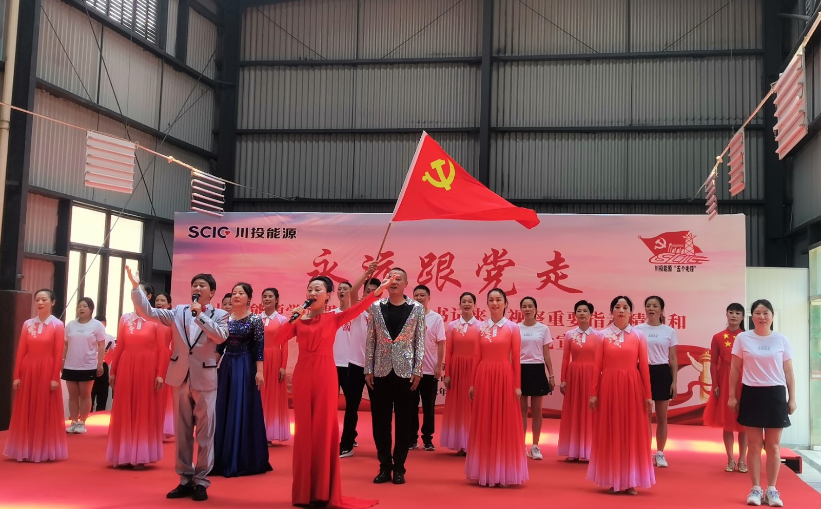 為進一步強化宣貫效果,川投能源理論宣講隊以“永遠跟黨走”為主題為大家奉上了一場立意深遠、形式多樣、內容精美的理論宣講:“動”有以省十二次黨代會精神為內容創(chuàng)作的音樂快板《治蜀興川新時代》,有激情澎湃的歌曲聯(lián)唱《美麗中國夢》《領航》;“靜”則有根據(jù)習近平總書記來川視察重要指示精神創(chuàng)作的詩歌朗誦《永遠跟黨走 譜寫新篇章》,還有感人至深的情景短劇《那雙紅布鞋》。期間,觀眾互動搶答環(huán)節(jié)里大家積極參與、踴躍搶答,更是將現(xiàn)場宣講氣氛推向高潮。這場“動”“靜”結合、相得益彰的宣講,用貼近群眾的“小節(jié)目”講凝神鑄魂的“大道理”,以“理論+文藝”的方式推動習近平總書記來川視察重要指示精神和省第十二次黨代會精神深入人心、落地生根。