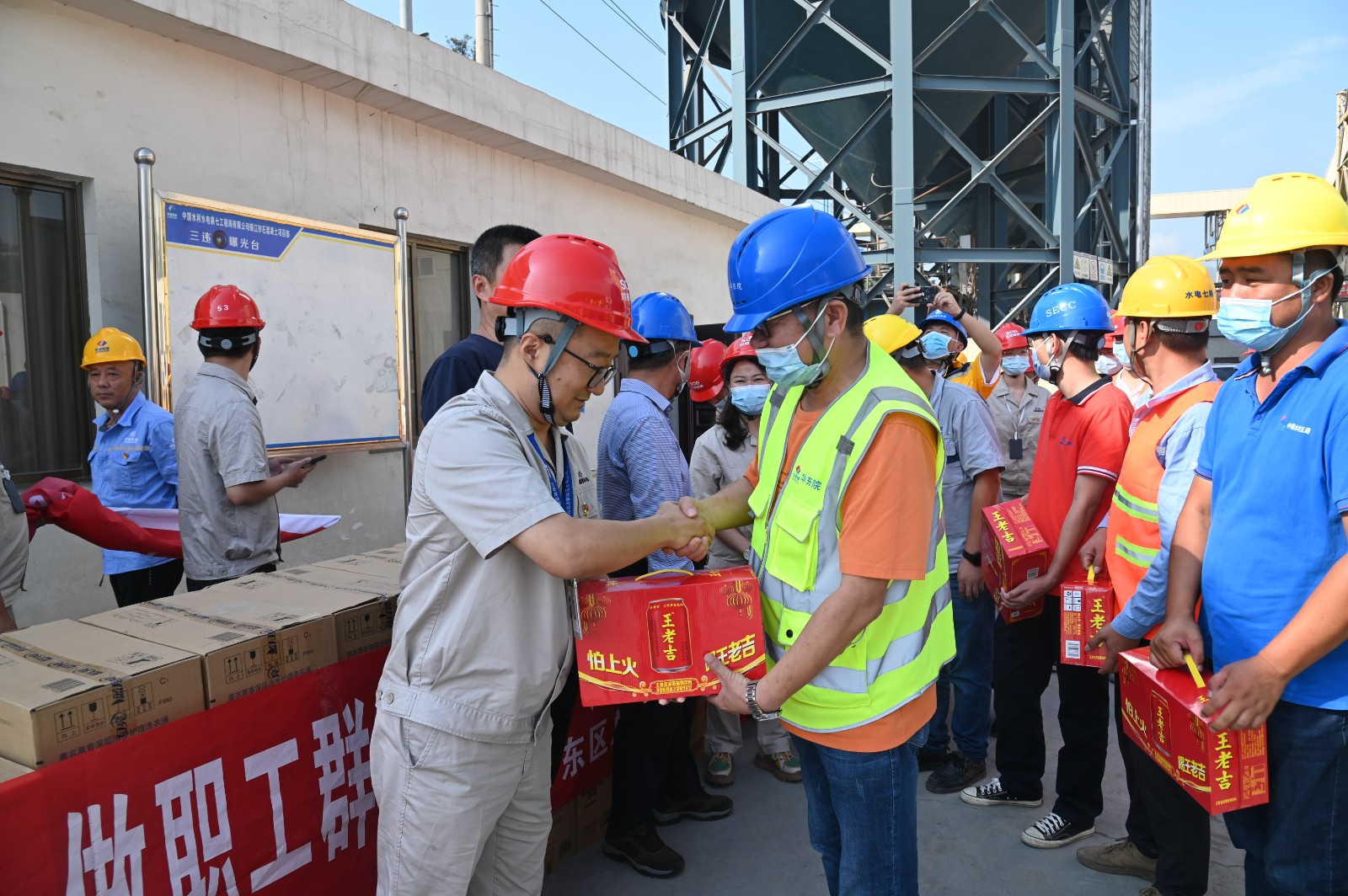 夏日送清涼,溫情暖心坎。本次活動為在烈日“烤”驗下辛勤勞作的工友們送上清涼飲料、沐浴露、洗衣液、毛巾、紙巾等防暑降溫物資300余份,參建單位長江設計、貴陽院監(jiān)理、二灘建設監(jiān)理、華東院環(huán)水保監(jiān)理、水電五局、水電七局、水電十局、四川路橋等工友代表接受慰問。通過此次慰問活動,工友們在炎炎酷暑中感受到了深深的關(guān)愛和舒心的涼意,大大激發(fā)了工作熱情,大家紛紛表示不懼艱難不怕高溫,將以更加堅定飽滿的“銀江精神”投身于工程建設,以實際行動和工作成效向黨的二十大交出滿意的“銀江答卷”。