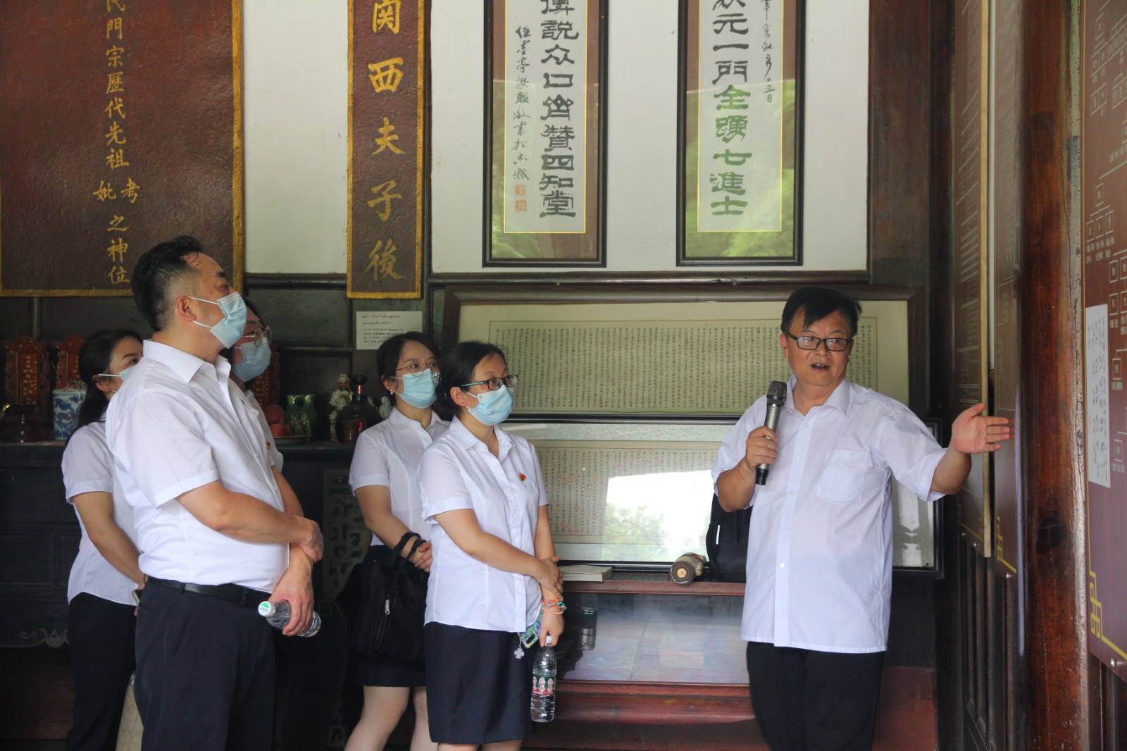 活動(dòng)在一邊唱著經(jīng)典永流傳的紅歌一邊聽(tīng)著新都人文歷史中拉開(kāi)帷幕。全體人員首先前往楊氏宗祠,了解“一門(mén)七進(jìn)士,宰相狀元家”楊升庵家族的優(yōu)良家風(fēng)家規(guī),在其第十四代孫楊德力老師的講解下,從清白傳家風(fēng)“四知”拒金,恪守“四重”家訓(xùn)、勤儉持家享和諧,牢記“四足”家規(guī)、淡泊名利真骨節(jié),傳揚(yáng)先祖遺訓(xùn)、先義后利傳美名四個(gè)方面,深入學(xué)習(xí)汲取楊家家風(fēng)精髓。