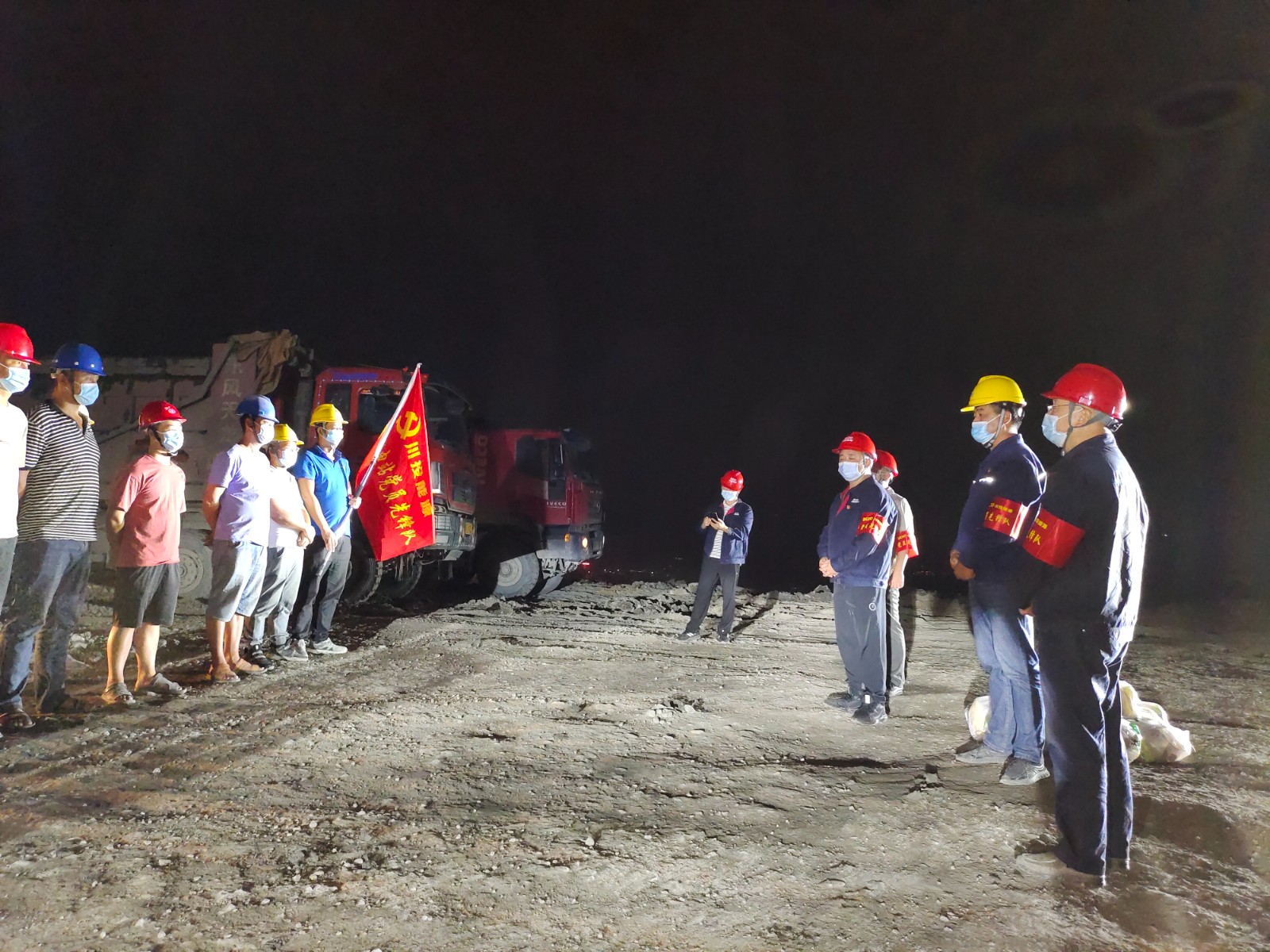 9月6日晚,經(jīng)申請辦理工地通行證后,公司防汛防地災(zāi)值班領(lǐng)導(dǎo)、黨總支委員、紀(jì)檢小組長、總經(jīng)理助理?xiàng)钿J帶領(lǐng)值班人員,對銀江水電站工地現(xiàn)場防洪度汛值班點(diǎn)位及施工現(xiàn)場進(jìn)行了檢查。受川投能源副總經(jīng)理、攀水電公司黨總支書記、董事長徐孝剛的委托,楊銳一行來到上游圍堰等部位,看望慰問勞碌一天晚上只能在車上休息的開挖及運(yùn)輸作業(yè)人員、夜間防汛值班人員共40余人,對他們的辛勤付出表示感謝,提前送上中秋節(jié)的祝福,希望他們在辛勤工作的同時(shí)也注意保護(hù)自身安全,嚴(yán)格做好防疫措施,共筑平安銀江。