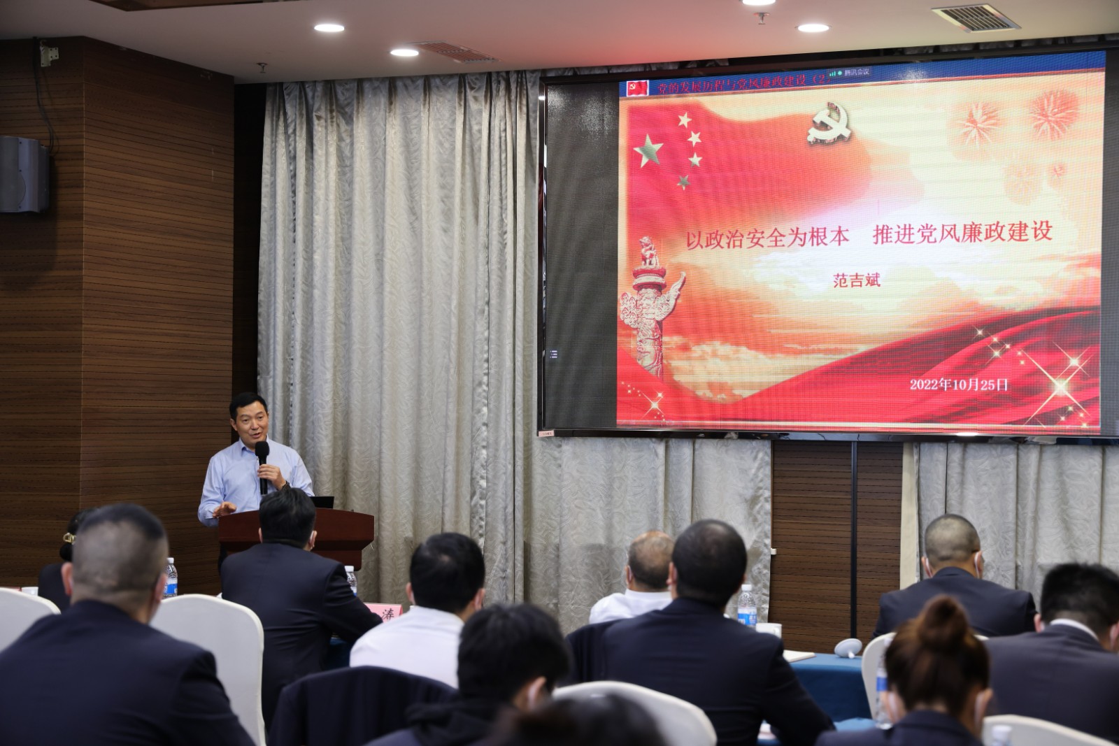 公司領(lǐng)導(dǎo)班子成員、全體黨員分別在主會場、分會場參會,會議嚴(yán)格遵守疫情防控各項(xiàng)規(guī)定。