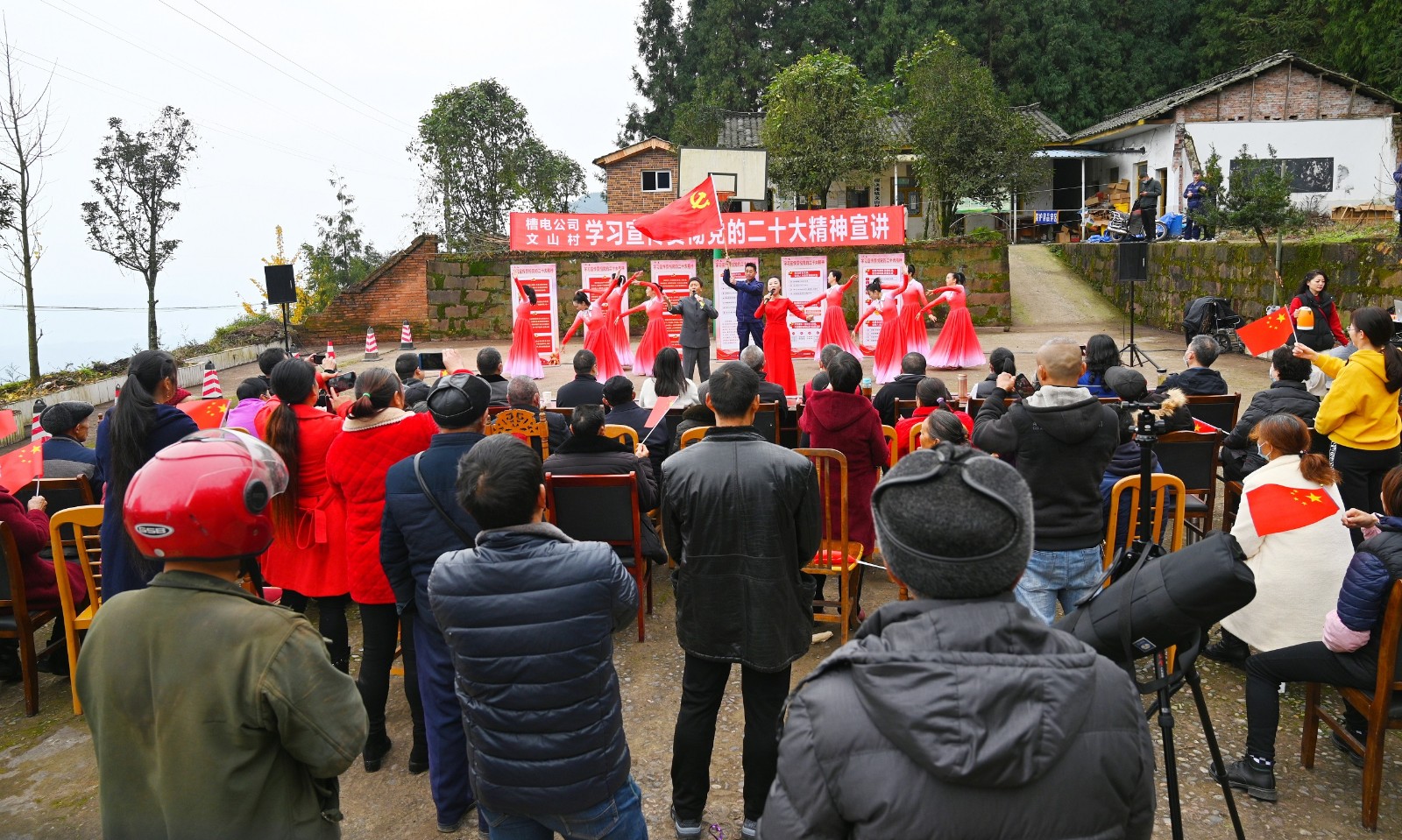 10月底,公司黨委為了把黨的二十大報告中關(guān)于全面推進鄉(xiāng)村振興,關(guān)于發(fā)展鄉(xiāng)村特色產(chǎn)業(yè),拓寬農(nóng)民增收致富渠道,鞏固拓展脫貧攻堅成果,增強脫貧地區(qū)和脫貧群眾內(nèi)生發(fā)展動力具體精神在文山村生根發(fā)芽,通過與文山村委溝通,公司宣講隊決定用群眾喜聞樂見的方式,為村民宣傳貫徹黨的二十大精神。