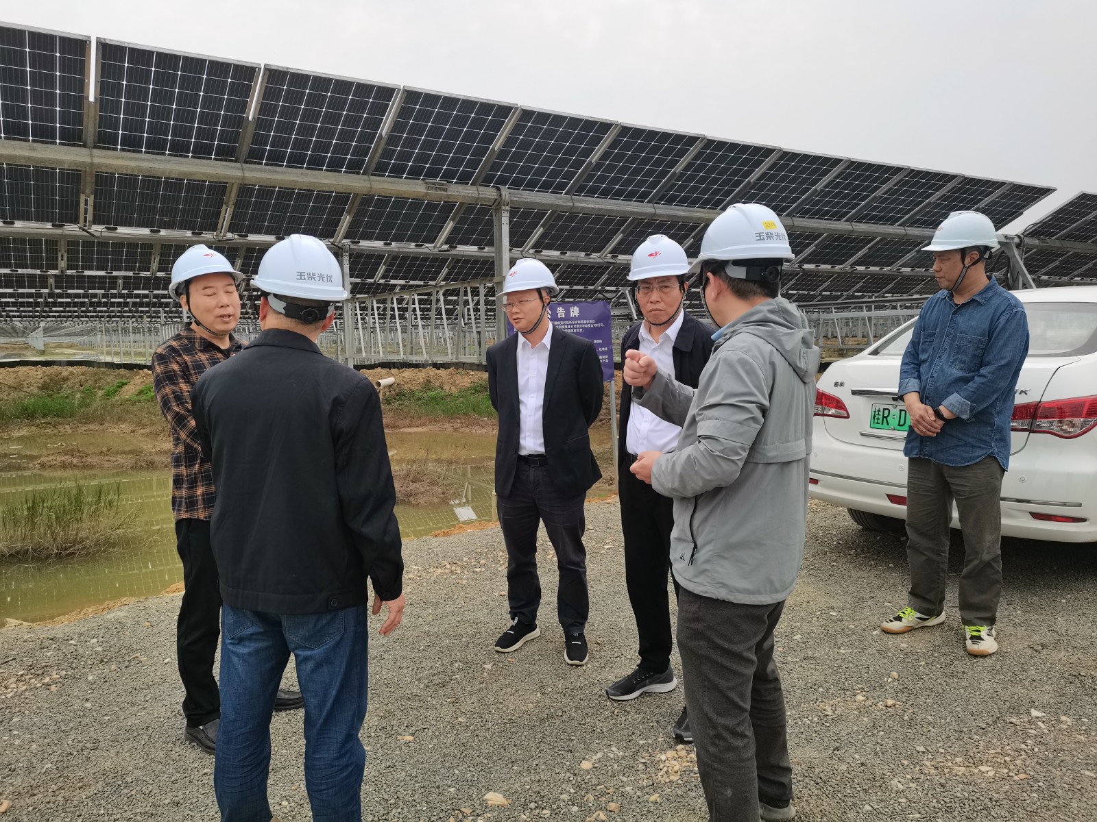徐孝剛一行首先來到廣西農(nóng)光公司桂平光伏電站現(xiàn)場,對電站設(shè)備運(yùn)行狀態(tài)、設(shè)備缺陷處理情況進(jìn)行了全面了解,重點(diǎn)檢查了一期小龍蝦養(yǎng)殖基地的安全隱患整改工作,要求盡快完善廣西農(nóng)光公司的防臺、防汛、防澇等應(yīng)急處置預(yù)案,同時(shí)對生產(chǎn)運(yùn)營部、運(yùn)維單位在第三方(如清洗公司、農(nóng)業(yè)作業(yè)人員)的安全管理上做出了更加嚴(yán)格的、切合實(shí)際情況的要求(如:加強(qiáng)外來人員的安全培訓(xùn)、完善光伏場的應(yīng)急逃生路線標(biāo)識等)。徐孝剛表示,一是要提高政治站位,增強(qiáng)主責(zé)意識,時(shí)刻保持警惕之心、緊繃維穩(wěn)之弦,扎實(shí)有效做好安全穩(wěn)定工作。二是要加強(qiáng)值班值守,落實(shí)24小時(shí)值班制度,領(lǐng)導(dǎo)干部和關(guān)鍵崗位保持通信暢通,進(jìn)一步筑牢安全防線,堅(jiān)決杜絕影響社會穩(wěn)定事件發(fā)生。