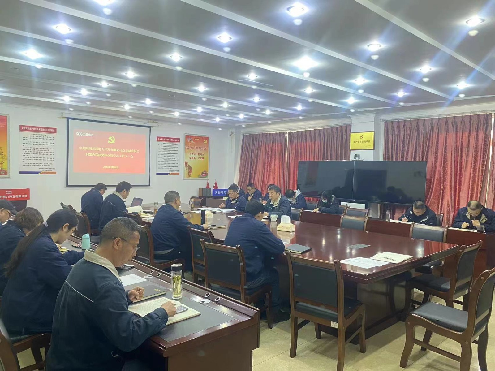 3月22日上午,川投電力黨委所屬天彭電力黨總支召開(kāi)2023年第3次黨總支理論中心組學(xué)習(xí)會(huì),專題學(xué)習(xí)研討全國(guó)兩會(huì)精神。公司領(lǐng)導(dǎo)、黨員干部、關(guān)鍵崗位人員參加會(huì)議,會(huì)議由公司黨總支書記、總經(jīng)理劉紅兵主持。