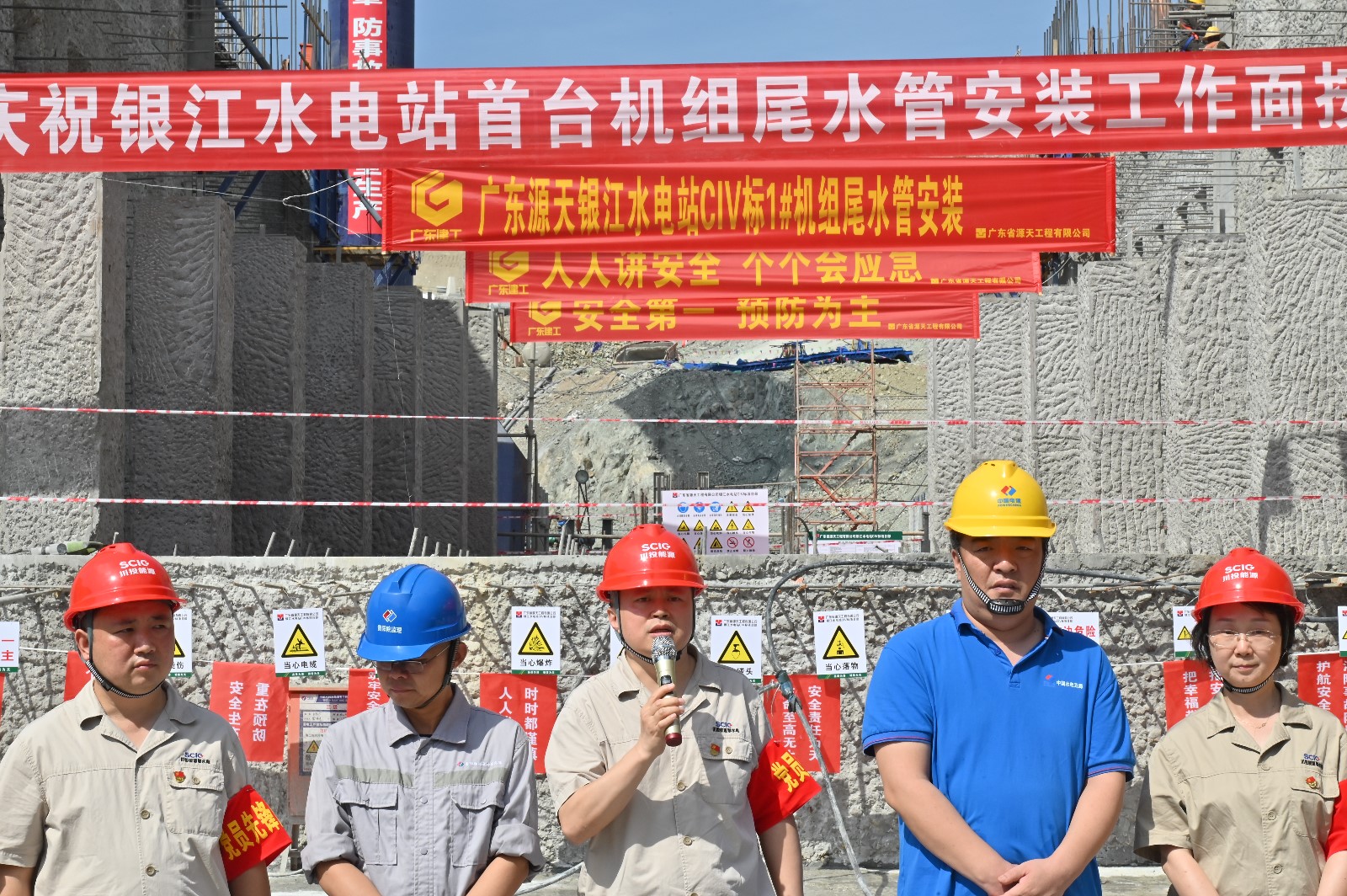 活動(dòng)最后,受攀水電黨總支書(shū)記、董事長(zhǎng)徐孝剛委托,攀水電黨總支副書(shū)記、總經(jīng)理吳巍嶼進(jìn)行了總結(jié)講話,對(duì)負(fù)責(zé)土建及金結(jié)安裝工程的水電五局項(xiàng)目部克服重重困難、按期完成交面表示親切慰問(wèn)和衷心感謝,并希望負(fù)責(zé)機(jī)電安裝工程的廣東源天項(xiàng)目部再接再厲,有序開(kāi)展后續(xù)機(jī)電安裝工程,按期實(shí)現(xiàn)反交面。吳巍嶼同時(shí)強(qiáng)調(diào),一是目前正值攀枝花極端高溫天氣,各參建單位要注意一線職工的防暑降溫,要更科學(xué)、更合理地安排好施工時(shí)間,確保一線職工身體健康;二是隨著土建和機(jī)電同時(shí)進(jìn)入施工高峰,交叉施工等安全風(fēng)險(xiǎn)進(jìn)一步增加,要求各參建單位牢固樹(shù)立安全意識(shí),在做好工程進(jìn)度的同時(shí),確保施工安全,努力完成2023年各項(xiàng)目標(biāo)任務(wù),為2025年投產(chǎn)發(fā)電奠定堅(jiān)實(shí)基礎(chǔ)。