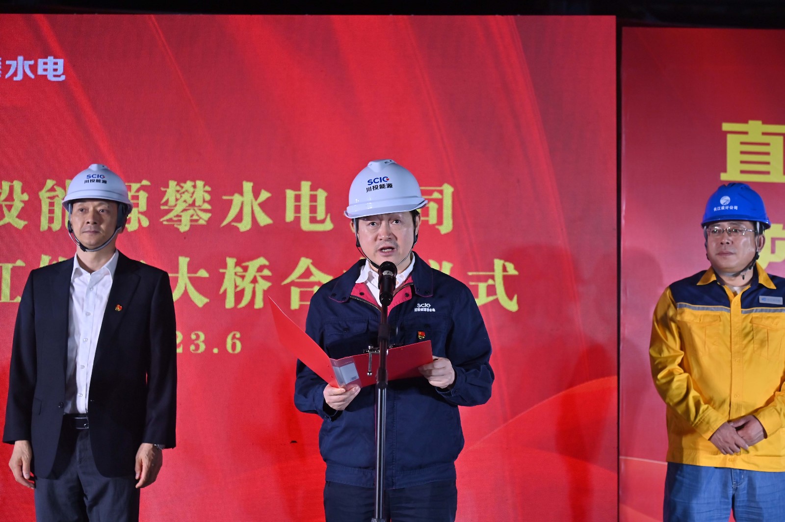 當(dāng)前正值川投能源深入開(kāi)展學(xué)習(xí)貫徹習(xí)近平新時(shí)代中國(guó)特色社會(huì)主義思想主題教育的時(shí)期,攀水電黨總支以高度政治責(zé)任感扎實(shí)推進(jìn)主題教育走深走實(shí),確保學(xué)用結(jié)合取得實(shí)效。2023年6月15日,夜晚的銀江大橋施工現(xiàn)場(chǎng)燈火璀璨,連續(xù)幾天超過(guò)40℃高溫的攀枝花迎來(lái)了難得的涼爽天氣,攀水電公司組織開(kāi)展了金沙江銀江大橋合龍儀式,川投能源黨委副書(shū)記、工會(huì)主席冉蘭平,黨委委員、副總經(jīng)理、總法律顧問(wèn)楊平,川投能源副總經(jīng)理、攀水電公司黨總支書(shū)記、董事長(zhǎng)徐孝剛出席儀式,儀式由攀水電公司黨總支副書(shū)記、總經(jīng)理吳巍嶼主持。公司相關(guān)領(lǐng)導(dǎo)及參建單位共計(jì)50余人參加儀式。