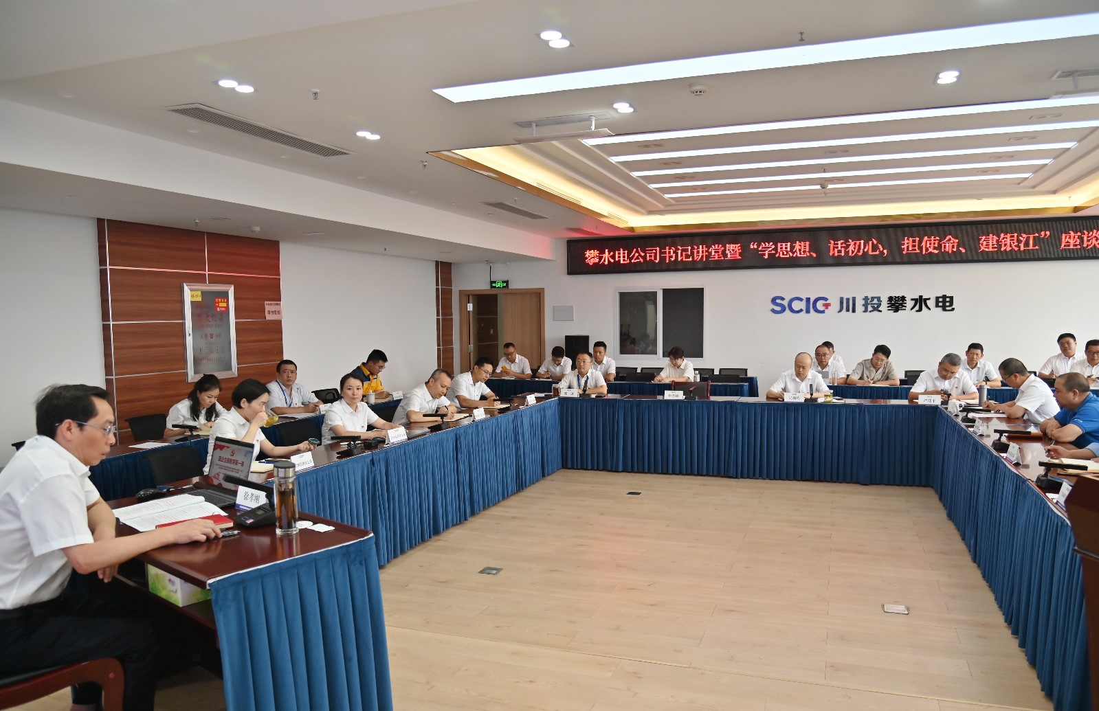為扎實(shí)推進(jìn)學(xué)習(xí)貫徹習(xí)近平新時(shí)代中國(guó)特色社會(huì)主義思想主題教育走深走實(shí),以思想偉力凝聚起干事創(chuàng)業(yè)的強(qiáng)大動(dòng)力,7月8日,攀水電黨總支組織開(kāi)展書記講堂暨“學(xué)思想、話初心,擔(dān)使命、建銀江”座談會(huì),由川投能源副總經(jīng)理、攀水電黨總支書記、董事長(zhǎng)徐孝剛講授專題黨課,公司全體黨員、非黨中干、統(tǒng)戰(zhàn)對(duì)象、青年職工,聯(lián)建支部書記、黨員代表共計(jì)40余人參加。