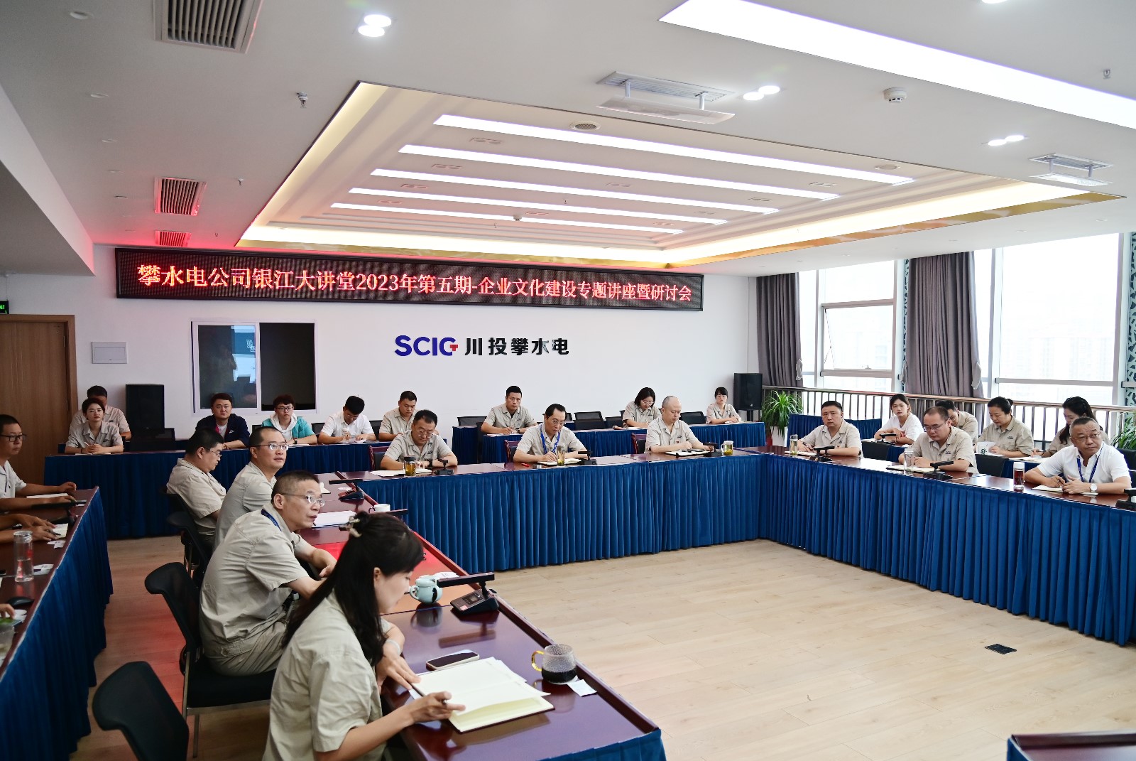 為推動(dòng)學(xué)習(xí)貫徹習(xí)近平新時(shí)代中國(guó)特色社會(huì)主義思想主題教育走深走實(shí),全面落實(shí)黨的二十大精神,堅(jiān)定文化自信,不斷適應(yīng)新時(shí)代國(guó)企文化建設(shè)的新形勢(shì)、新任務(wù)和新要求,充分發(fā)揮企業(yè)文化在推進(jìn)企業(yè)高質(zhì)量發(fā)展中的積極作用,7月30日,攀水電公司組織開(kāi)展了2023年第五期銀江大講堂——企業(yè)文化建設(shè)專(zhuān)題講座暨研討會(huì),會(huì)議邀請(qǐng)到了四川省市場(chǎng)監(jiān)督管理學(xué)會(huì)理事、攀枝花學(xué)院經(jīng)濟(jì)與管理學(xué)院副教授顧福珍授課。川投能源副總經(jīng)理、公司黨總支書(shū)記、董事長(zhǎng)、企業(yè)文化建設(shè)領(lǐng)導(dǎo)小組組長(zhǎng)徐孝剛、公司在攀領(lǐng)導(dǎo)及全體員工共計(jì)40余人參加會(huì)議。