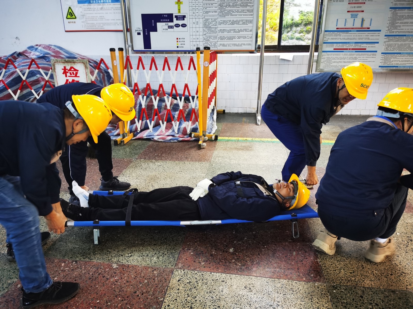 本次應(yīng)急演練以檢修現(xiàn)場起重吊裝作業(yè)為背景,模擬了起吊作業(yè)時檢修人員受傷場景:1#機組檢修現(xiàn)場起重作業(yè)時,起重繩索傾斜造成油桶滑落,砸傷檢修工作人員左腳。聽到“傷員”大聲呼救后,行車駕駛員立即停止操作,檢修工作負責人隨即下令停止檢修班所有工作,并組織現(xiàn)場檢修人員組成救援小組,在確保自身安全的情況下開展現(xiàn)場救援。切斷起重機電源、協(xié)助“傷員”脫險并實施急救、撥打120急救電話、險情即時規(guī)范逐級上報、應(yīng)急領(lǐng)導小組相關(guān)人員現(xiàn)場指揮救援,一項項流程井然有序推進,一個個環(huán)節(jié)嚴絲合縫銜接,整個演練過程指揮順暢、組織嚴密,規(guī)范重現(xiàn)了事故處理、應(yīng)急預案響應(yīng)的全部流程,是安全生產(chǎn)活動的一次生動實踐。