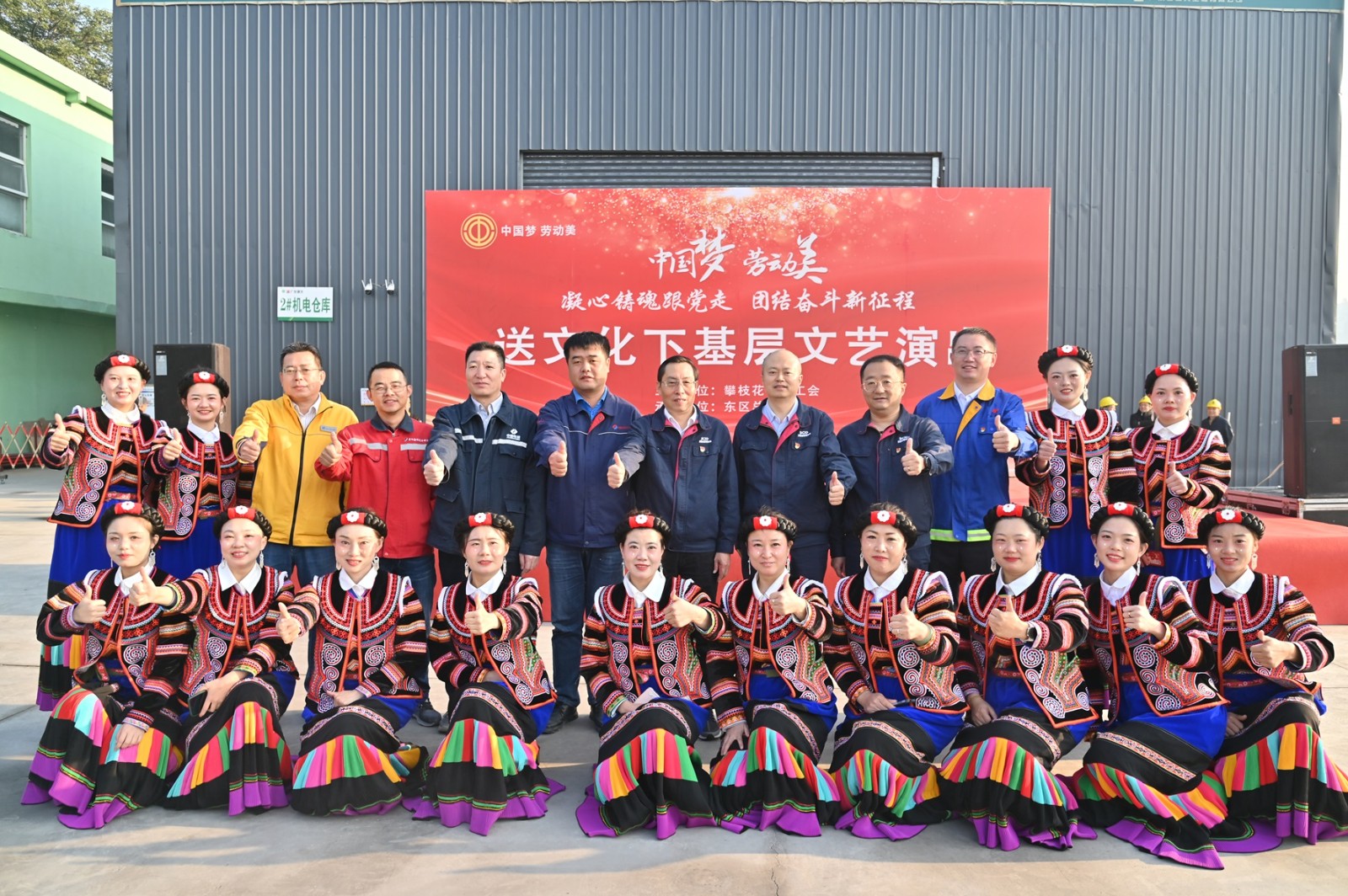 為深入學(xué)習貫徹黨的二十大精神、習近平總書記來川視察重要指示精神,11月29日上午,由攀枝花市總工會主辦,東區(qū)總工會、攀水電公司承辦的“中國夢·勞動美——凝心鑄魂跟黨走 團結(jié)奮斗新征程”2023年“送文化下基層”文藝演出在銀江水電站工地火熱開展。川投能源副總經(jīng)理,攀水電公司黨總支書記、董事長徐孝剛出席活動,攀枝花市總工會、東區(qū)總工會、攀水電公司及參建單位200余人參加。