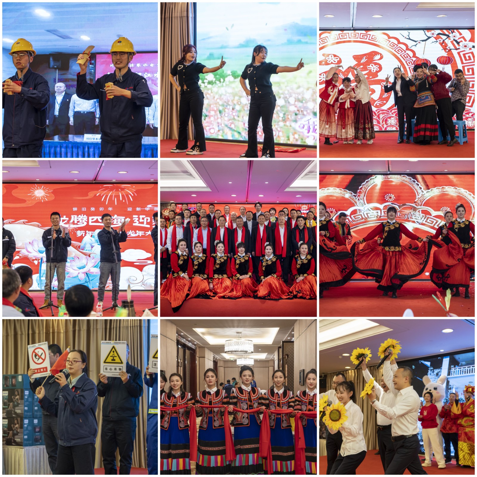 座談會后,攀水電公司組織了“銀江之春”職工文藝匯演,本次文藝匯演所有節(jié)目均由公司各部門和各參建單位員工利用休息時間自編自導自演,大家以歌舞、情景劇、快板等形式共12個節(jié)目,展現(xiàn)了大家在銀江水電站建設中的工作日常和酸甜苦辣。來自水電七局項目部的三句半“賀新春”,說出了電站砂石骨料系統(tǒng)質(zhì)量管控的種種細節(jié);計劃合同部員工們一改往日的嚴肅,以一首嘻哈版“銀江DISCO”講述了招標和合同管理中的艱辛與困難;各參建單位安全員共同參演的“安全記心間”提醒大家時刻不能忘安全;水電五局項目部快板“禮贊銀江水電站”表達了攻堅克難筑大壩的信心和決心;黨群工作部脫口秀“十大心動瞬間發(fā)布會”以沙畫的方式帶領(lǐng)大家重溫了川投能源職工運動會中的感人故事;活動中,公司還與攀枝花市移動公司簽訂了戰(zhàn)略合作協(xié)議,攜手將銀江水電站打造成“5G+智慧電廠”, 由雙方領(lǐng)導帶領(lǐng)的大合唱“龍的傳人”更是催人奮進。