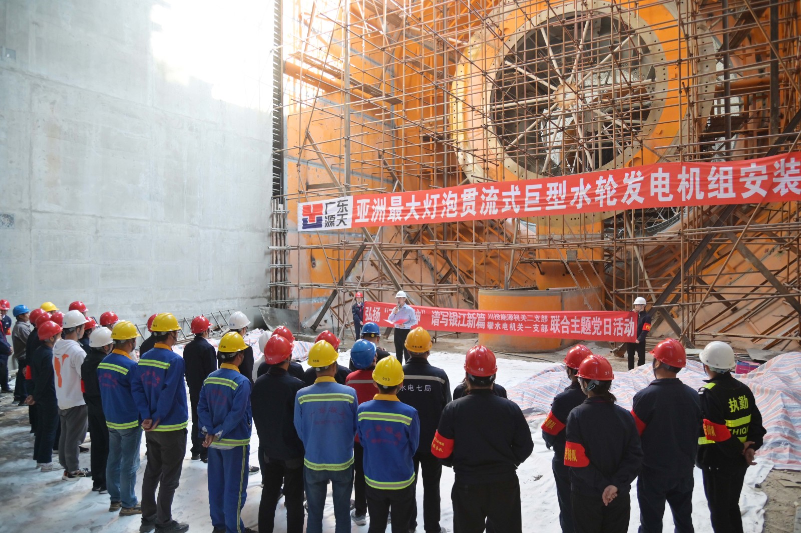 在銀江水電站亞洲最大燈泡貫流式巨型水輪發(fā)電機組安裝現(xiàn)場,川投能源機關(guān)二支部書記李睿講授了工地微黨課《承諾》,與大家一起重溫銀江水電站建設(shè)過程中的感人故事?;顒又校煨傆猛ㄋ滓锥恼Z言,為現(xiàn)場同志介紹了銀江水電站的建設(shè)特點、施工情況和下一步工程建設(shè)計劃,并號召全體黨員和團員青年要圍繞“保一爭二”提前發(fā)電重要目標(biāo),團結(jié)一心、勇挑重?fù)?dān)、善作善成。