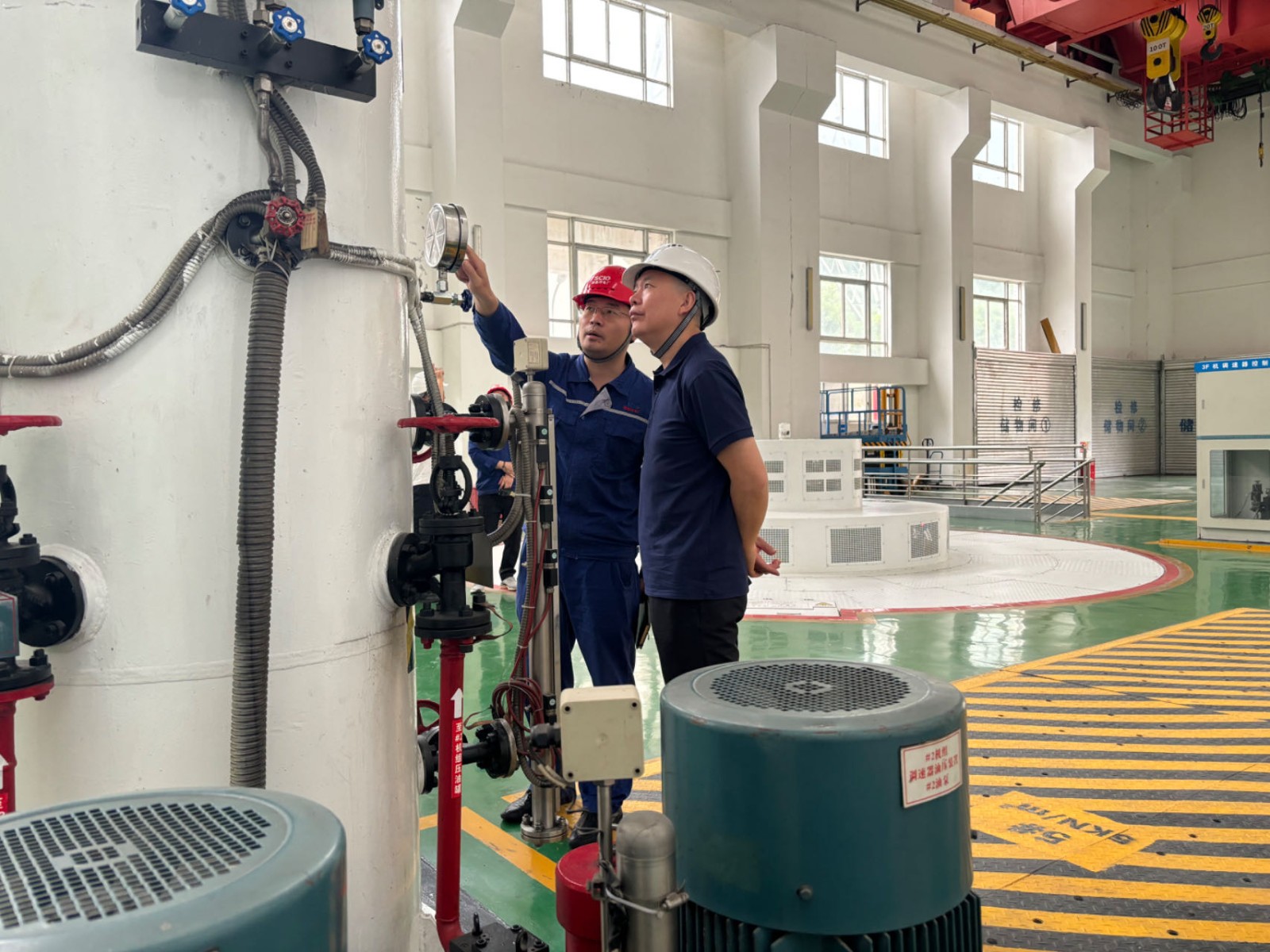 檢查組一行先到生產(chǎn)一線對主廠房設(shè)備設(shè)施、大壩水庫調(diào)度、生態(tài)流量下泄、應(yīng)急物資儲備、中控室生產(chǎn)運行情況進行了重點查看,檢查中,腳基坪電廠廠長趙兵對應(yīng)急物資儲備情況、防汛應(yīng)急預(yù)案、汛期值班值守、地質(zhì)災(zāi)害風險辨識和防范措施等情況進行了匯報,陶世賢對腳基坪電廠在防汛減災(zāi)各項工作落實情況給予了充分的肯定。