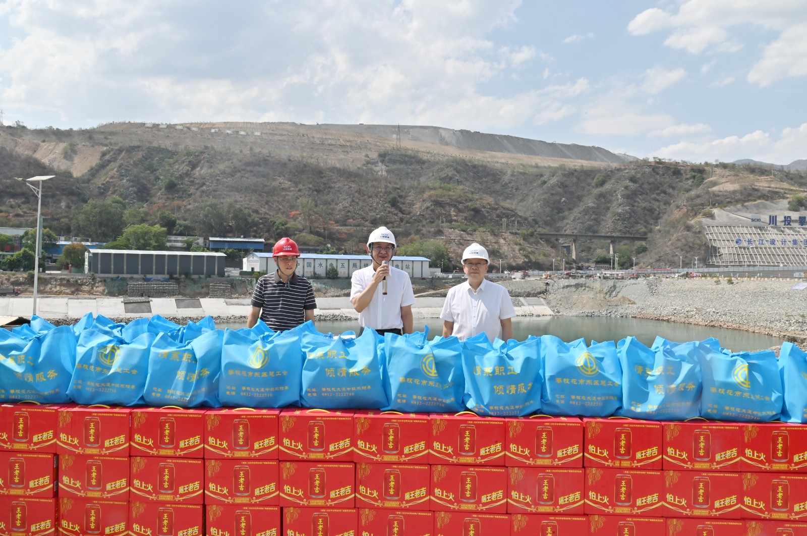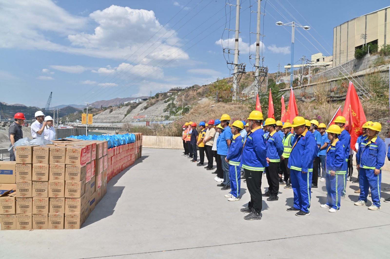 隨后,凌永航一行向銀江水電站現(xiàn)場(chǎng)各參建單位的一線(xiàn)工友們送上了清涼飲品、洗衣液、洗發(fā)露等400余份清涼物資,叮囑工友在烈日烘烤的工作中,一定要全面做好各類(lèi)防護(hù)措施,注意防暑降溫,合理安排工作時(shí)間,注意自身安全和健康。