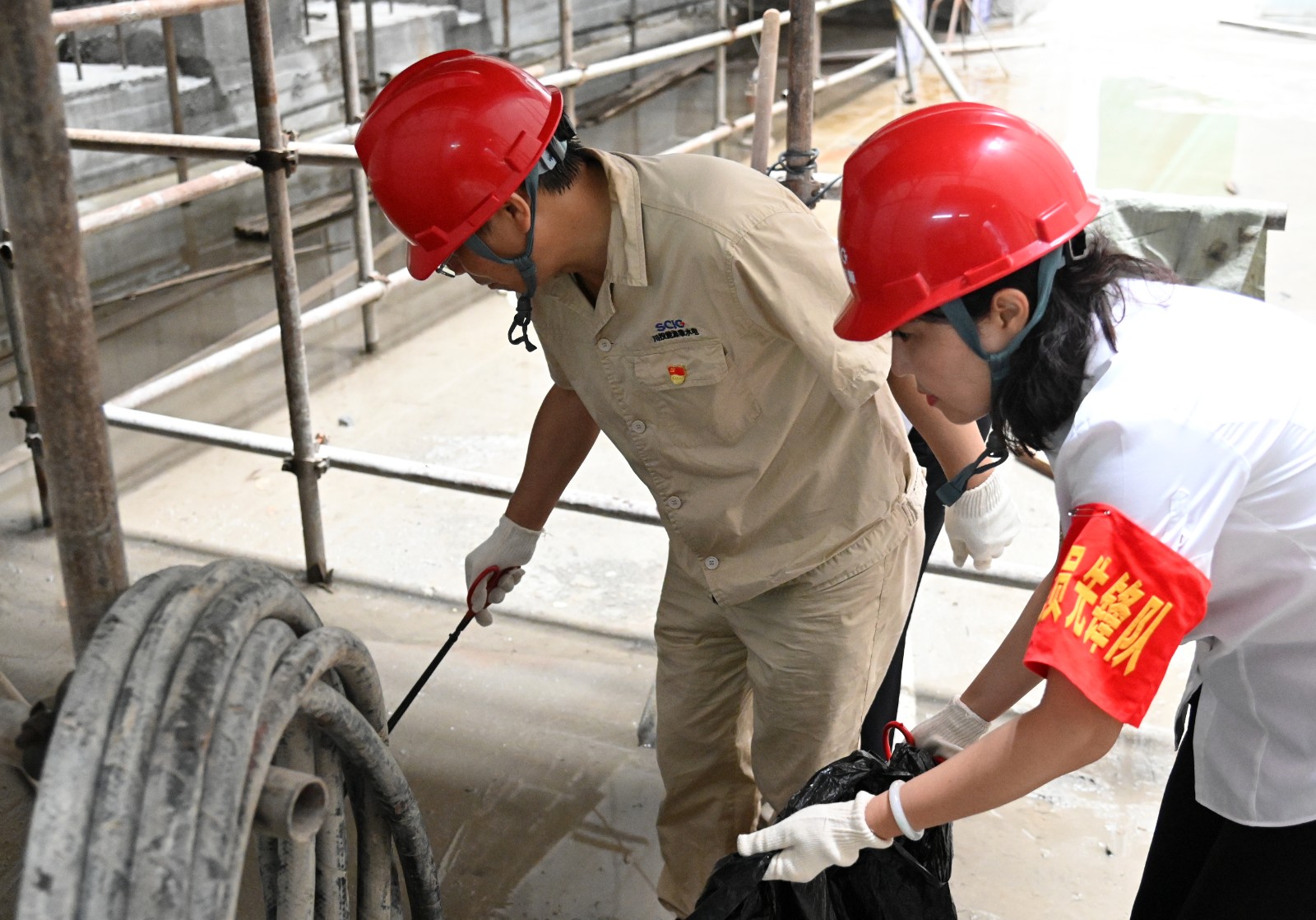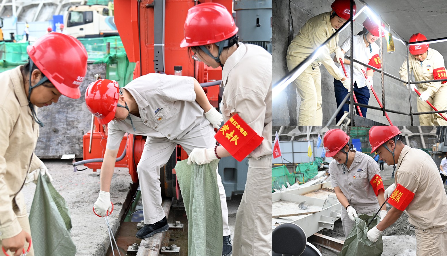大家來到銀江水電站壩頂施工通道,對現(xiàn)場吊裝點及各施工作業(yè)面衛(wèi)生清潔區(qū)域進行了清掃分工,各支部黨員同志沖鋒在前,主動帶領其他黨員同志、志愿者對銀江水電站壩頂、壩頂至安裝間通道、安裝間、副廠房等區(qū)域進行了衛(wèi)生清掃、垃圾清運,并協(xié)調了臨時堆放物資、安裝構建的整理吊裝等,為后期轉子支架到達現(xiàn)場營造了整潔、便捷的環(huán)境。