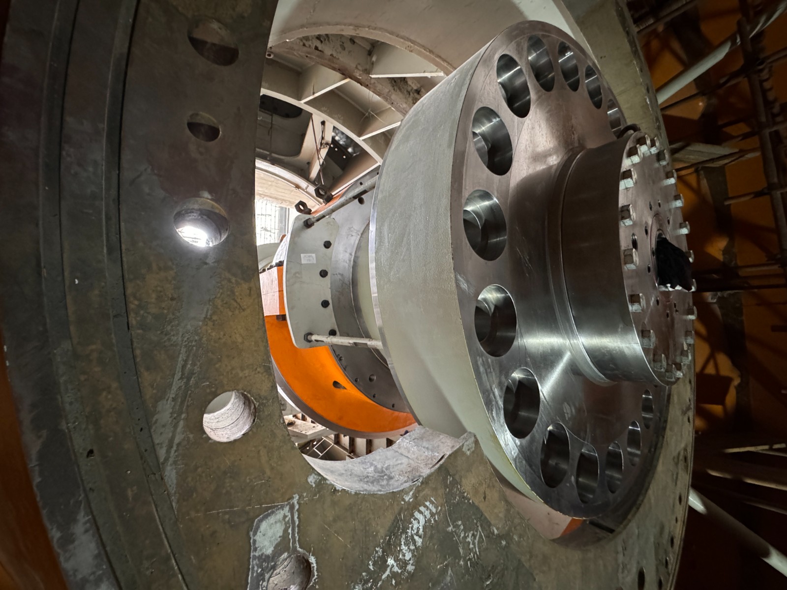本次吊裝,一是嚴把質量關口,清理作業(yè)中,機電安裝人員對主軸各加工表面油脂、灰塵、銹蝕、毛刺等雜物進行了徹底清理;二是嚴守安全底線,吊裝前,為確保大件吊裝作業(yè)高質量完成,相關人員精心組織,明確責任分工,結合吊裝作業(yè)場地實際