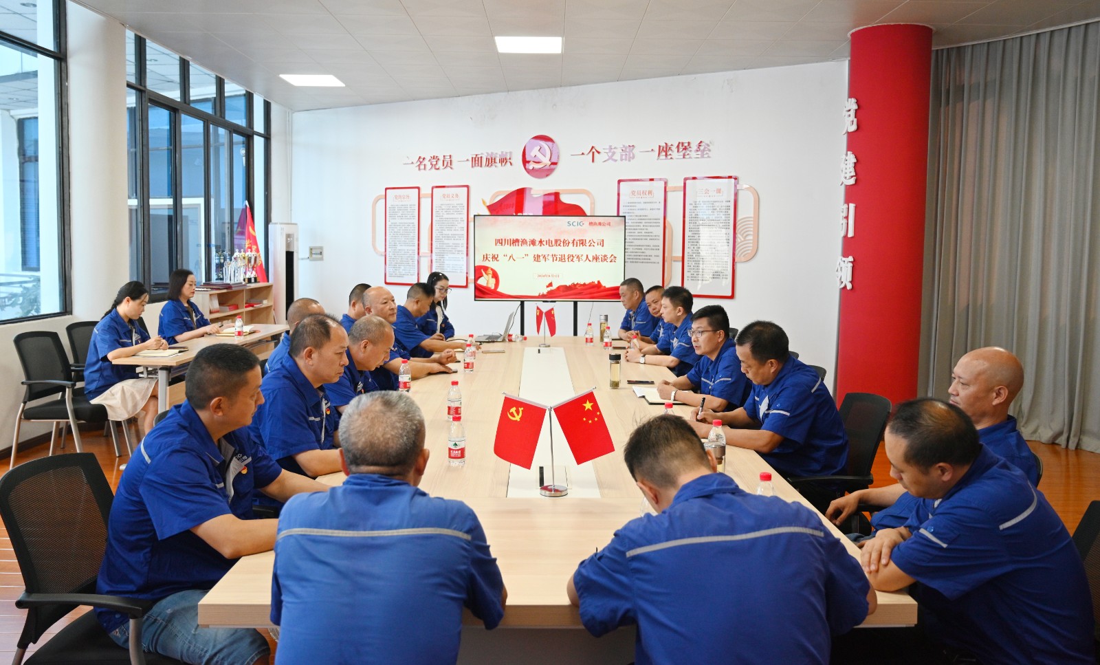 8月1日上午,槽漁灘公司、天彭電力公司組織召開退役軍人座談會,集中學(xué)習(xí)習(xí)近平總書記對退役軍人工作作出重要指示精神,退役軍人代表回憶了自己難忘的軍旅生涯,暢談了在工作中的感想和體會,公司領(lǐng)導(dǎo)班子成員向退役軍人代表送上了節(jié)日慰問,退役軍人齊唱軍歌《咱當(dāng)兵的人》《團結(jié)就是力量》,在整齊嘹亮的歌聲中,共慶“八一”建軍節(jié)。