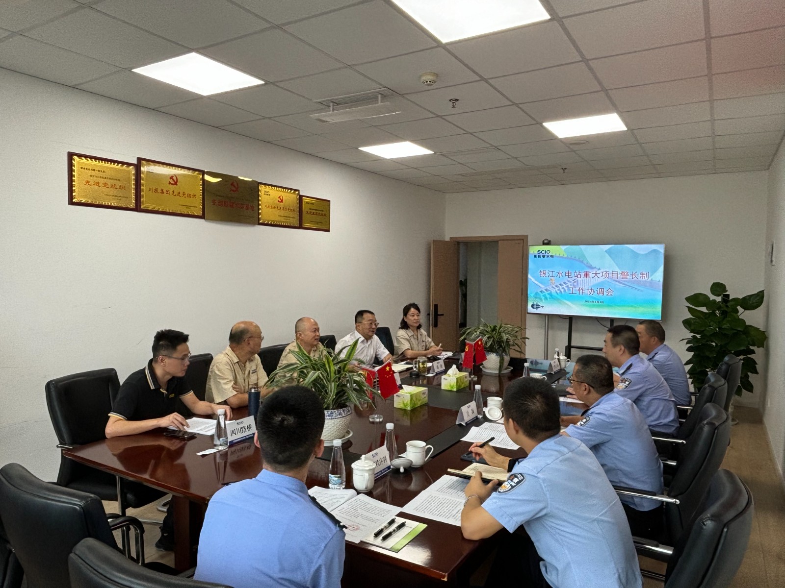 為保障銀江水電站重大項目安全順利推進(jìn),護(hù)航服務(wù)攀枝花市高質(zhì)量發(fā)展建設(shè)共同富裕試驗(yàn)區(qū),攀枝花市公安局與攀水電公司建立了銀江水電站“重大項目警長制”,9月3日上午,市公安局機(jī)關(guān)黨委副書記張征帶隊赴公司召開工作協(xié)調(diào)會議。攀水電公司黨總支副書記、總經(jīng)理、聯(lián)絡(luò)工作組組長吳巍嶼出席會議,交警支隊辦公室、秩序科、三大隊及公司相關(guān)部門等10余人參加會議。
