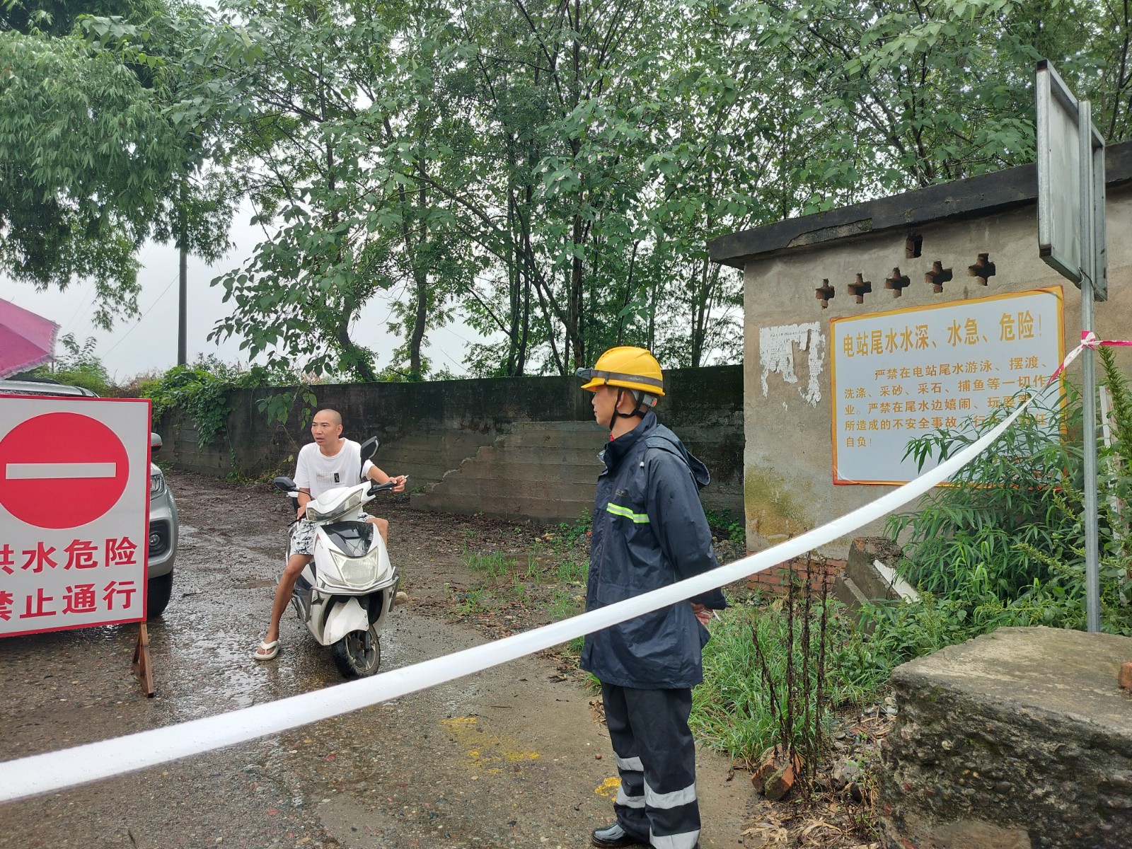 隨著雨水和洪水的疊加,入庫流量持續(xù)上漲,6時42分,百花灘電廠入庫流量達(dá)到10889 m3/s,為2020年“8?18”洪水以來最大洪峰。面對如此大的洪水,電廠按照要求啟動了年度首個防洪Ⅳ級應(yīng)急響應(yīng),在洪雅縣休假的員工也主動返崗參加防洪,積極配合地方政府和電廠按照應(yīng)急響應(yīng)流程參與防洪工作。他們一方面積極參與協(xié)助附近村民落實“三避讓”和“三個緊急撤離”剛性要求,另一方面積極開展電廠防汛巡查、防汛沙袋搬運和封堵。為防止發(fā)生意外,電廠職工鄭勇和龍宇虹凌晨4時20分冒雨前往防汛風(fēng)險點拉起警戒線,耐心引導(dǎo)村民選擇安全路線實施避讓和撤離。