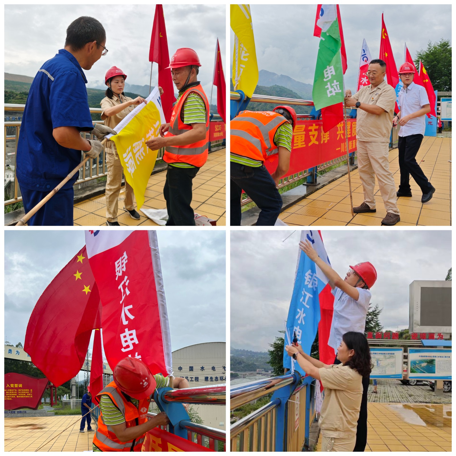 在大家的共同努力下,一面面嶄新鮮艷的五星紅旗,一幅幅絢麗的彩旗掛在黨建宣傳陣地和施工區(qū)域,紅旗彩旗與綠水青山交相輝映,隨著江風(fēng)襲來(lái)迎風(fēng)招展,構(gòu)成了金沙江畔的美麗畫(huà)卷。每名黨員都用勞動(dòng)之美迎接國(guó)慶節(jié)的到來(lái),用務(wù)實(shí)的工作作風(fēng)確保實(shí)現(xiàn)銀江水電站年底發(fā)電目標(biāo),用實(shí)際行動(dòng)向祖國(guó)母親75歲華誕獻(xiàn)禮。