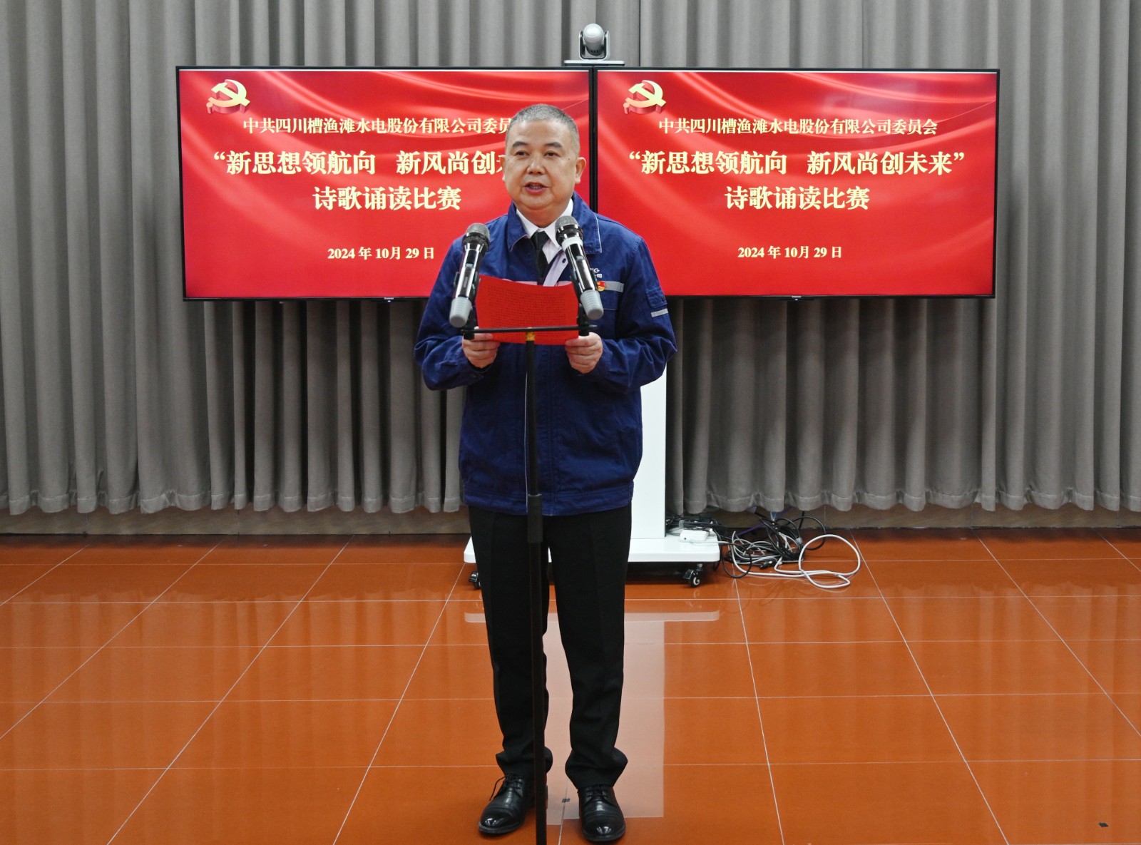為深入貫徹黨的二十屆三中全會(huì)精神及省委十二屆六次全會(huì)精神,激發(fā)全體黨員職工愛黨愛國(guó)、愛崗敬業(yè)的熱情,10月29日上午,槽漁灘公司黨委舉辦“新思想領(lǐng)航向、新風(fēng)尚創(chuàng)未來”詩(shī)歌誦讀比賽。川投電力黨委副書記、工會(huì)主席楊鑫出席,槽漁灘公司黨委書記、董事長(zhǎng)何光富致辭。