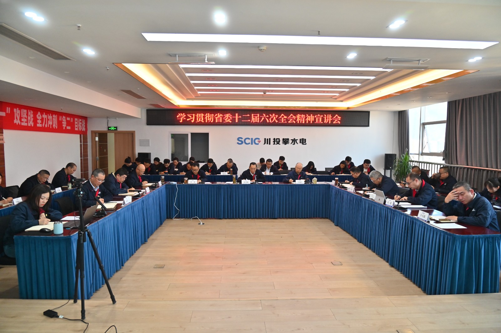 為深入學(xué)習(xí)貫徹省委十二屆六次全會(huì)精神,推動(dòng)全會(huì)精神在攀水電公司和銀江水電站落地落實(shí),11月24日上午,川投能源副總經(jīng)理,攀水電公司黨總支書記、董事長徐孝剛開展了省委十二屆六次全會(huì)精神宣講。會(huì)議以“現(xiàn)場+視頻”形式召開,公司和水電五局項(xiàng)目部全體黨員、干部職工代表共計(jì)50余人參加學(xué)習(xí)。