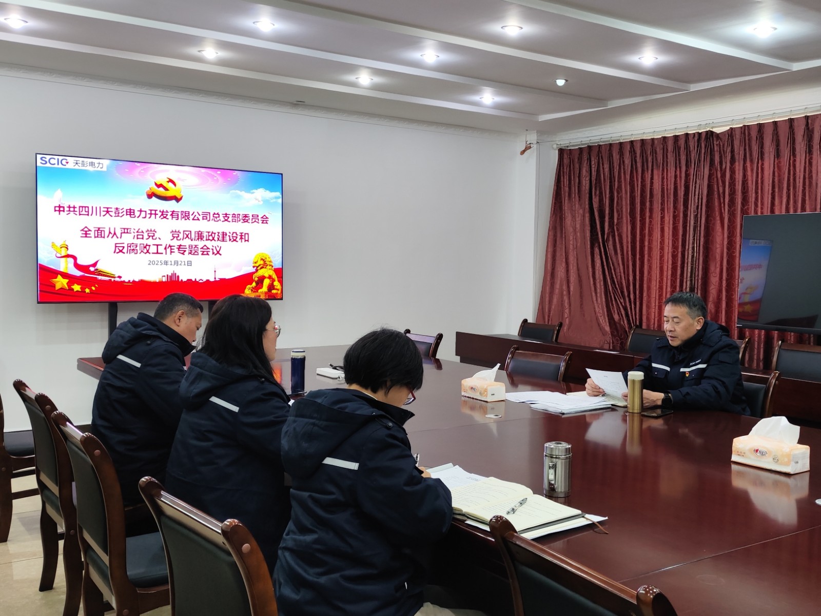 為深入貫徹全面從嚴(yán)治黨要求,持續(xù)強(qiáng)化黨風(fēng)廉政建設(shè),推動(dòng)反腐敗各項(xiàng)工作落實(shí)落地,近日,天彭電力黨總支召開年度全面從嚴(yán)治黨、黨風(fēng)廉政建設(shè)和反腐敗工作專題會(huì),公司領(lǐng)導(dǎo)班子成員參會(huì),會(huì)議由天彭電力公司黨總支書記、執(zhí)行董事、總經(jīng)理劉紅兵主持。