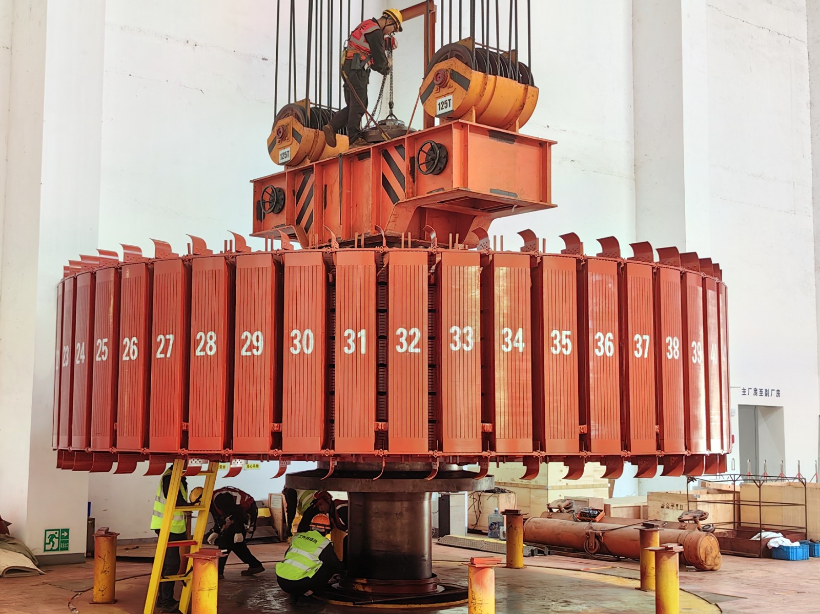 由于轉(zhuǎn)子與定子之間的間隙只有12毫米,要把這兩個“大家伙”精準送回機坑指定位置并安裝好,難度系數(shù)非常高。川投電力高度重視,上下聯(lián)動,周密部署,全鏈條壓實安全生產(chǎn)責任,確保轉(zhuǎn)子回裝工作萬無一失。